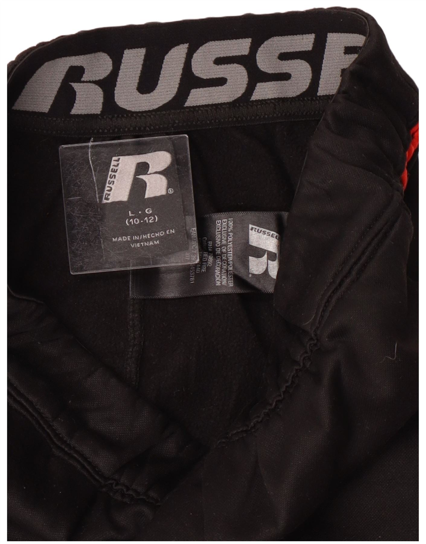 - AI beskrivelse: Denne Russell Athletic træningsbukser til drenge er lavet af sort strik polyester for atletisk komfort. Pull-on-designet har en justerbar talje for en sikker pasform. Capri-længde ben giver bevægelsesfrihed. Røde sidepaneler og en subtil logoaccent tilføjer en dynamisk sportsstil. Praktiske lommer fuldender designet.