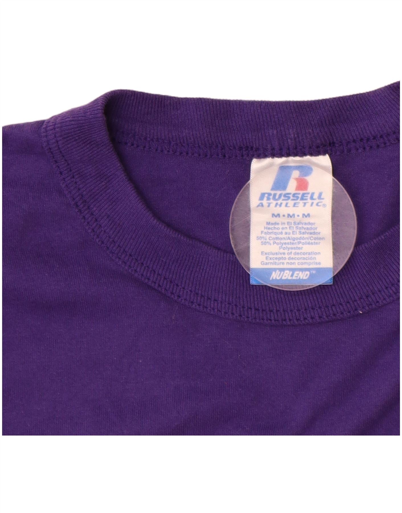RUSSELL ATHLETIC Mens Denham Softball Graphic T-Shirt Top Medium Purple