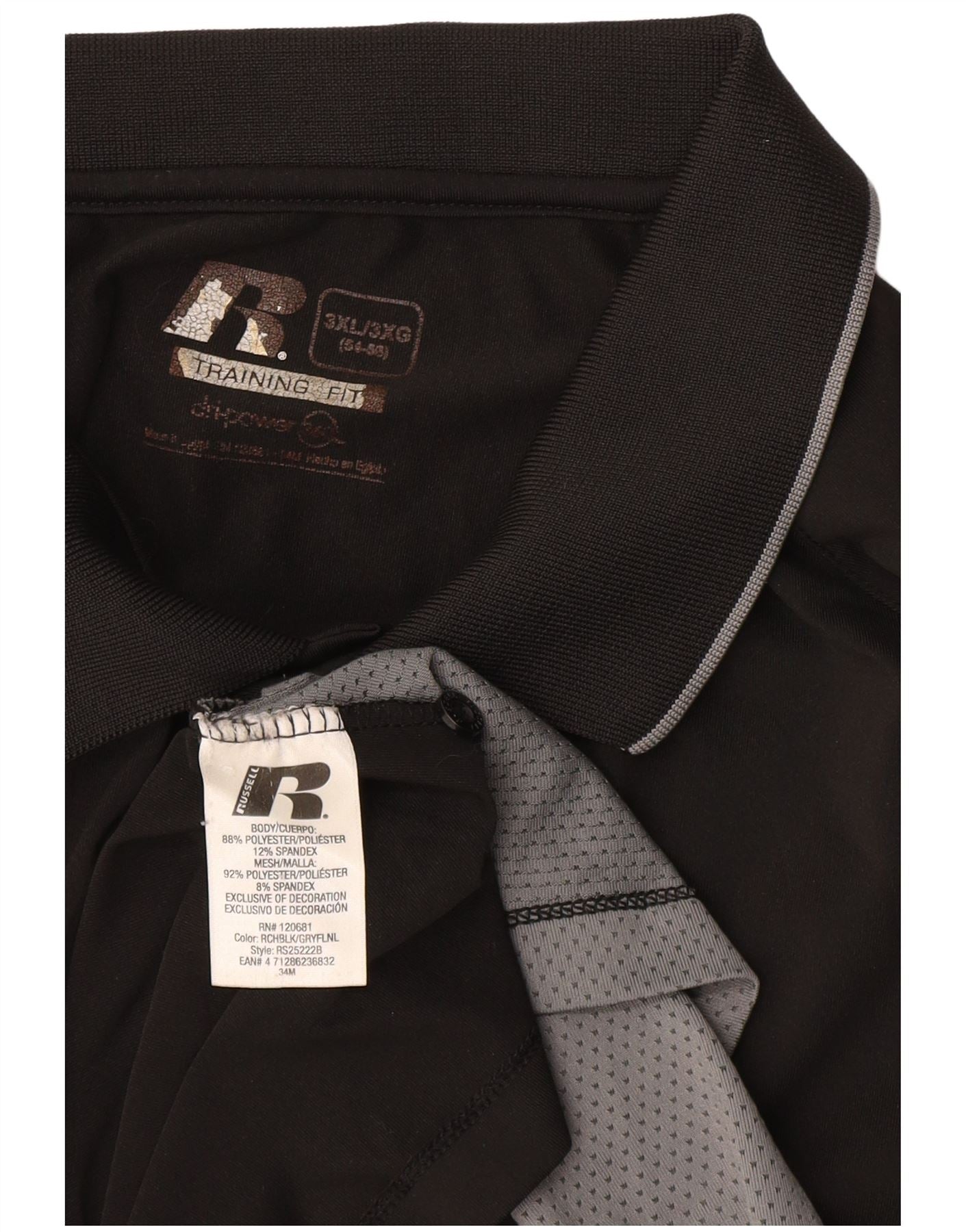 RUSSELL ATHLETIC Herre Dri-Power Polo Shirt UK 54/56 3XL Sort Colourblock