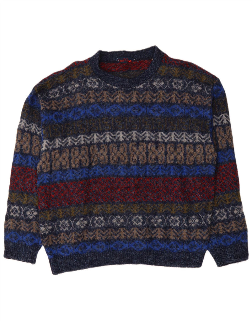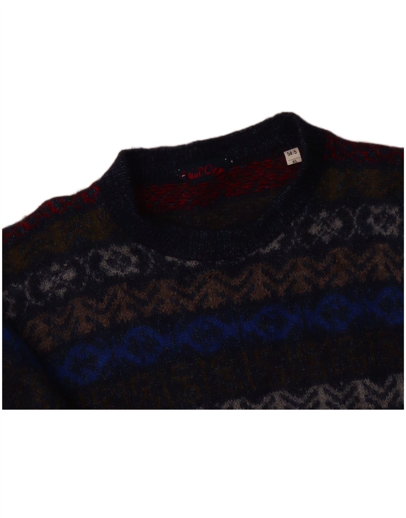 SAINT GEORGE Mens Crew Neck Jumper Sweater IT 54/56 XL Navy Blue Fair Isle