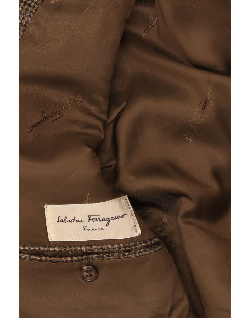 SALVATORE FERRAGAMO Mens Blazer Jacket UK 42 XL Brown Check Classic