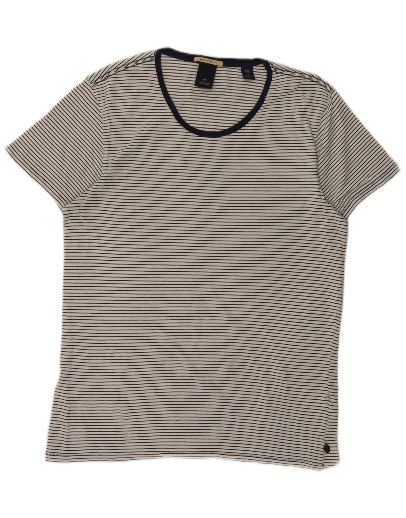 SCOTCH & SODA Herre T-shirt Top Medium White Pinstripe Bomuld