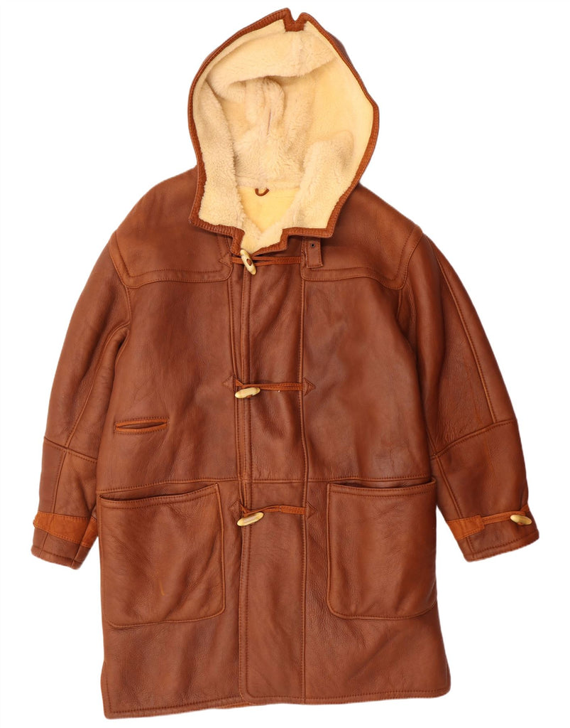 SCOUT Herre Hooded Shearling Duffle Coat UK 40 Large Brown Shearling