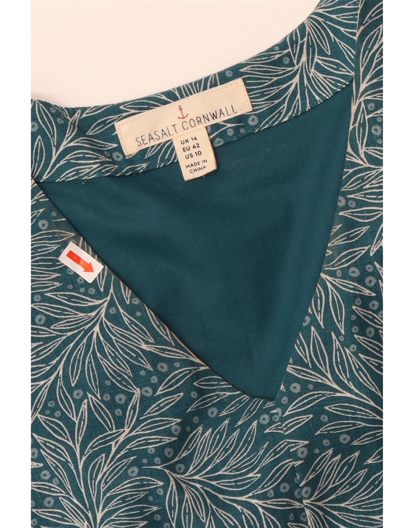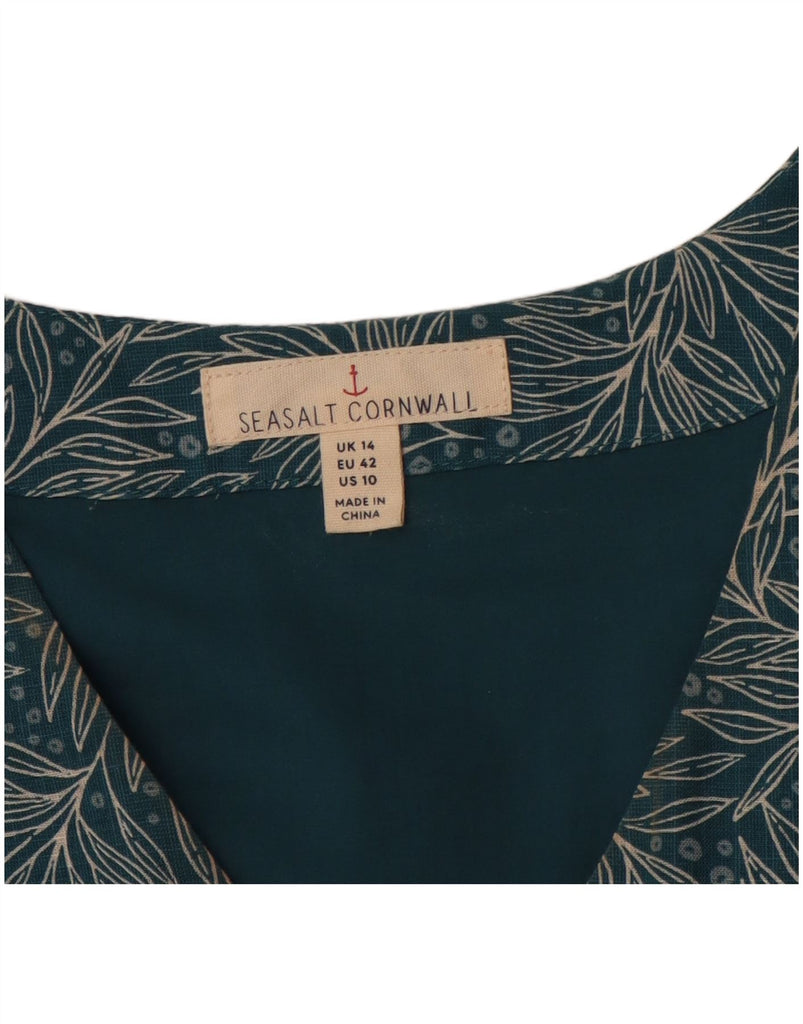 SEASALT CORNWALL Womens A-Line Dress UK 14 Large Green Floral Cotton