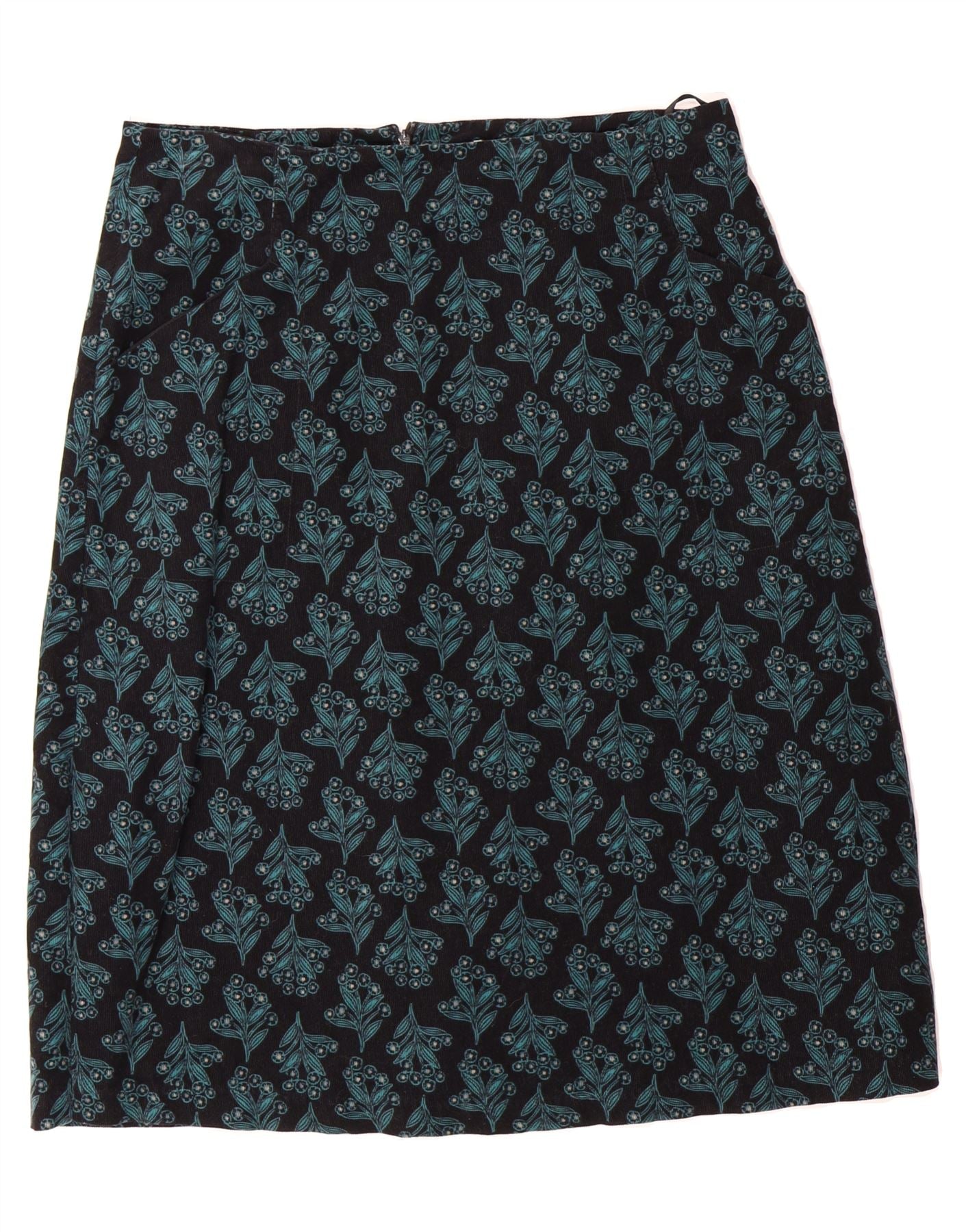 SEASALT Womens A-Line Skirt UK 14 Large W32 Black Floral Cotton
