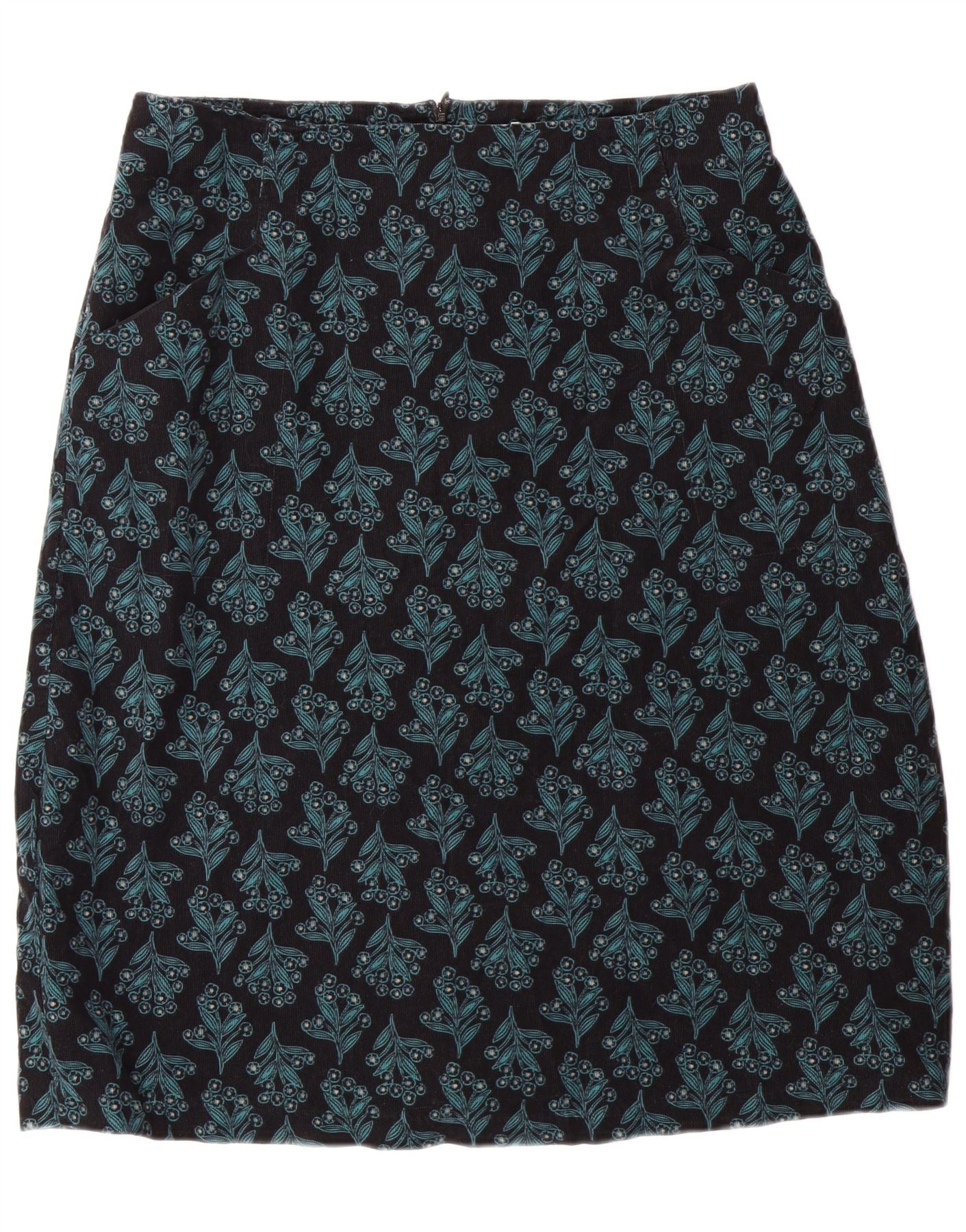 SEASALT Womens Corduroy Skirt UK 14 Large W32 Black Floral Cotton