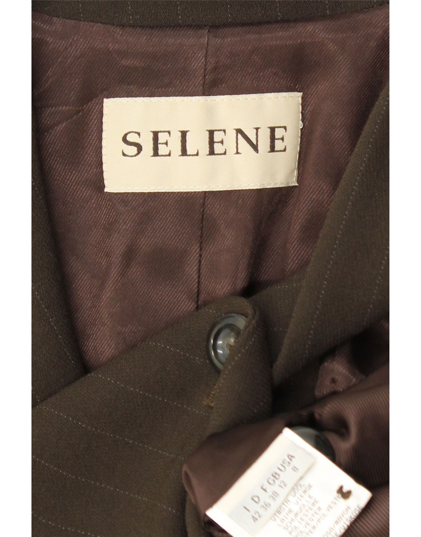 Selene Dame 3 Button Blazer Jacket UK 12 Medium Brown Nålestribe