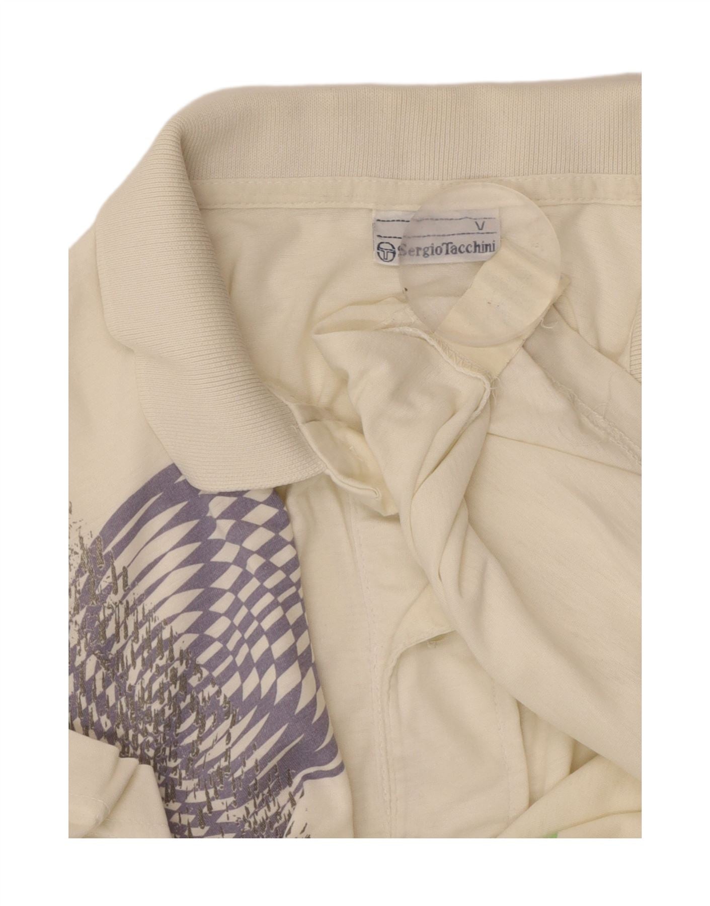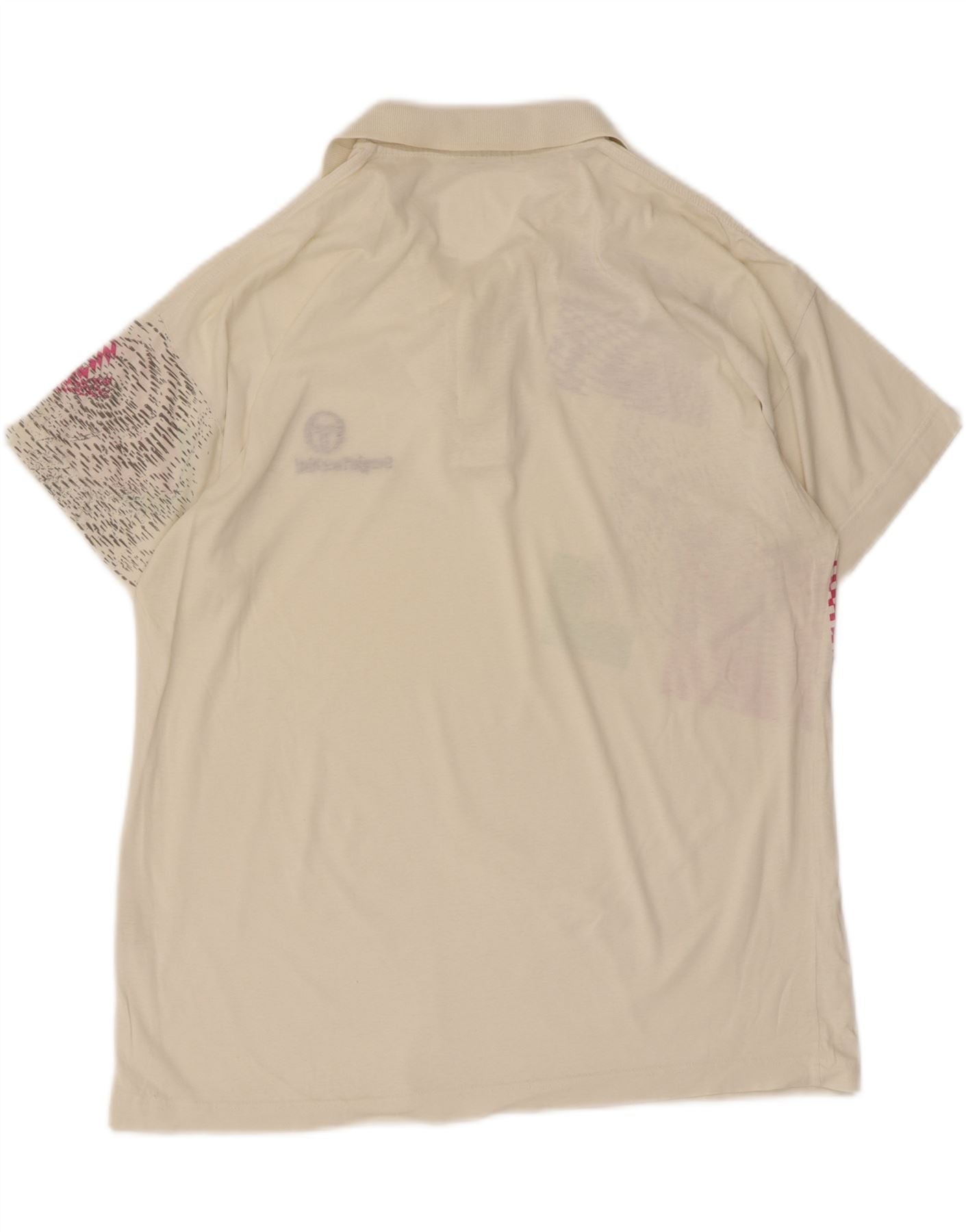 SERGIO TACCHINI Mens Polo Shirt Medium Off White Geometric Cotton