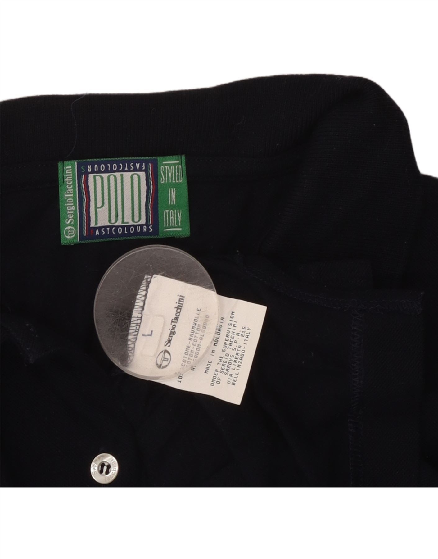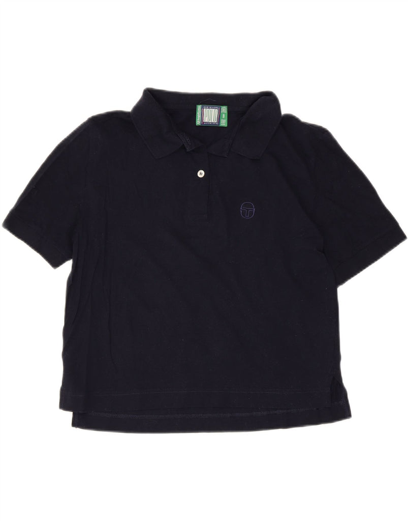 SERGIO TACCHINI Womens Crop Polo Shirt UK 14 Large Navy Blue Cotton