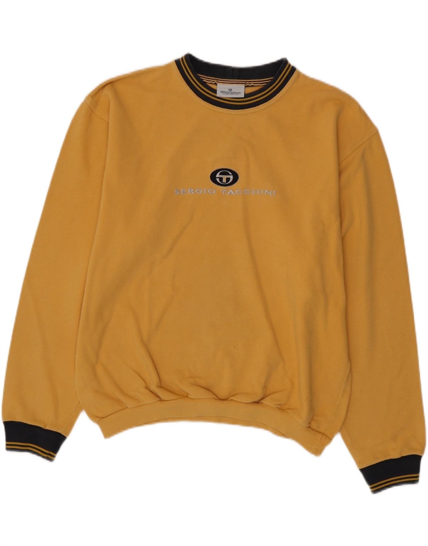 SERGIO TACCHINI Womens Graphic Sweatshirt Jumper UK 16 Large Yellow Cotton