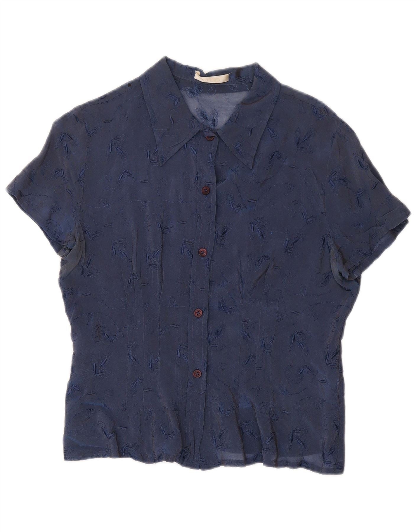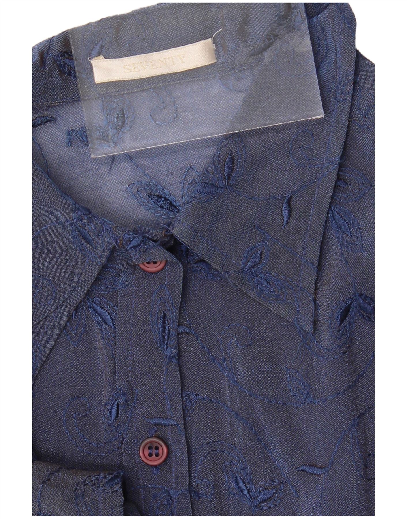 SEVENTY Dame Se Through Shirt Bluse UK 12 Medium Navy Blue Floral