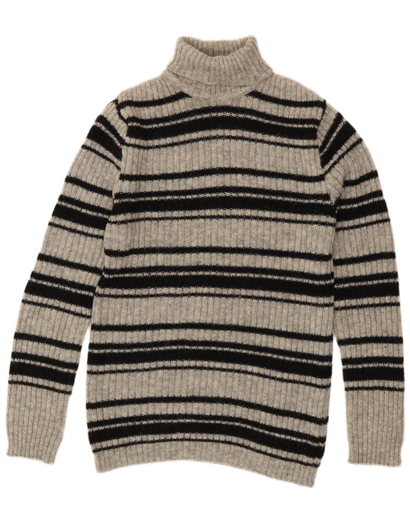 SHETLAND Dame Rullehals Sweater UK 16 Stor grå stribet uld