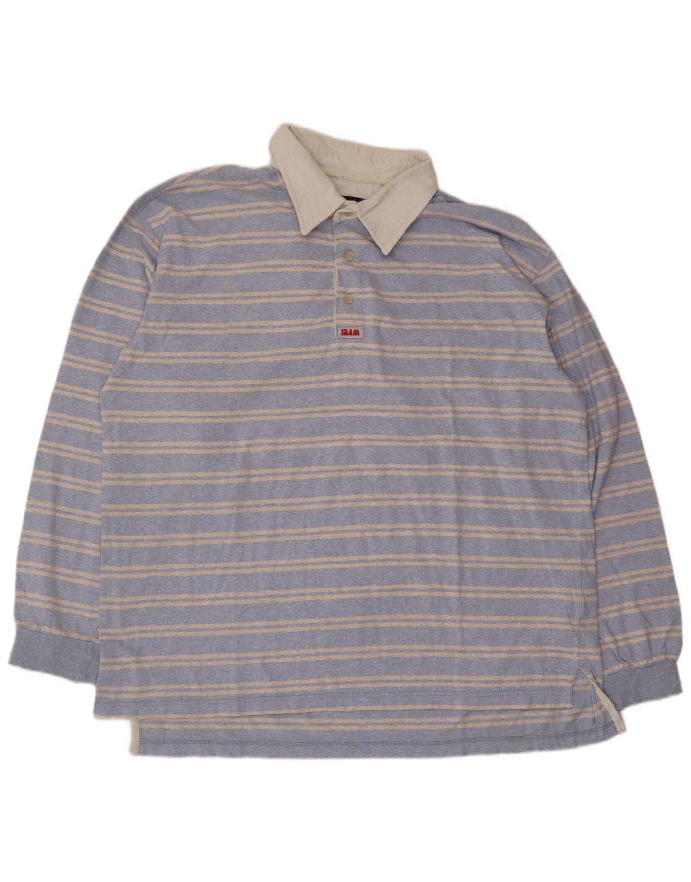 Slam Langærmet Polo Shirt til mænd 2XL Blå Stribet Bomuld