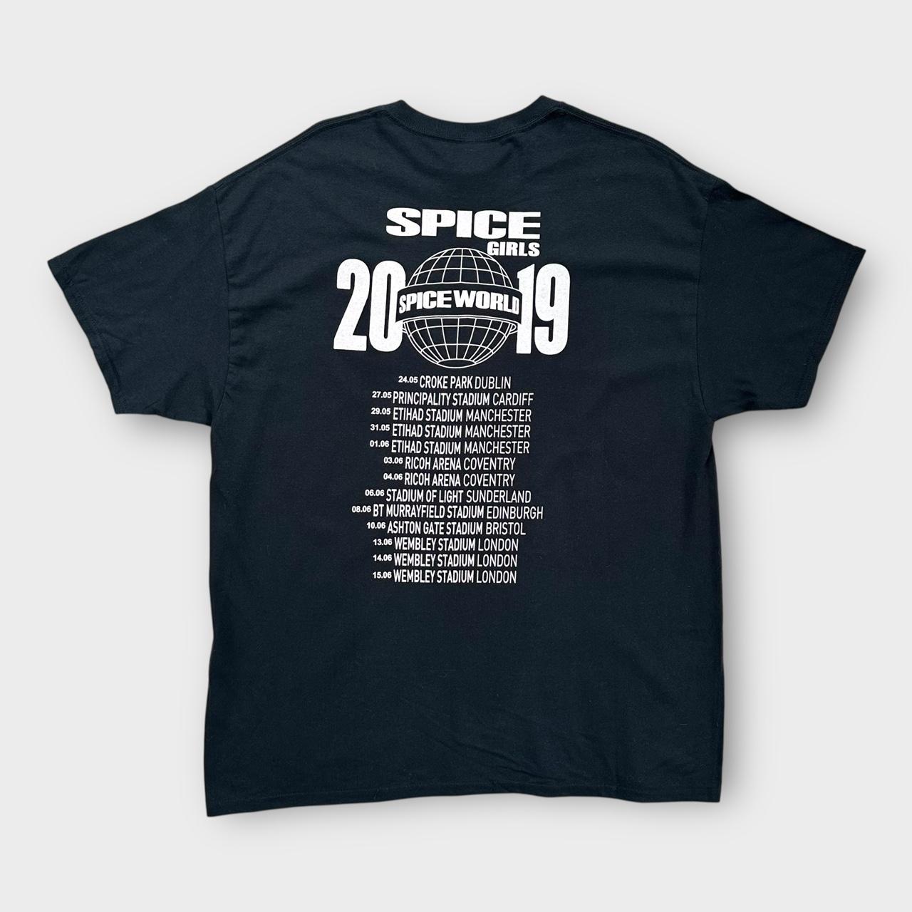 Spice Girls "spic world" 2019 UK tour musik t-shirt i sort med grafisk print på brystet og ryggen på et Gildan tag