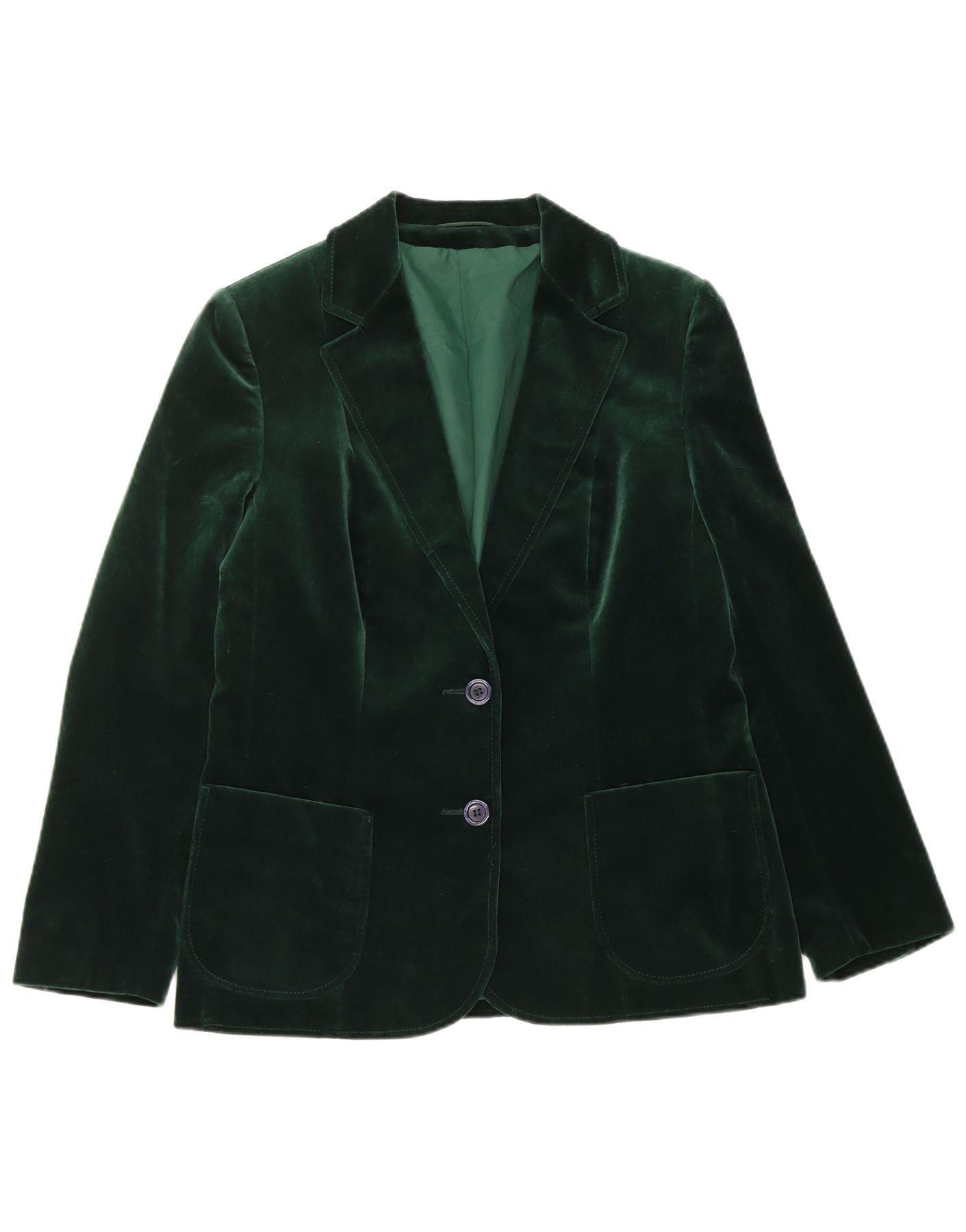 St Michael Dame 2 Button Velvet Blazer Jacket UK 14 Medium Green Bomuld