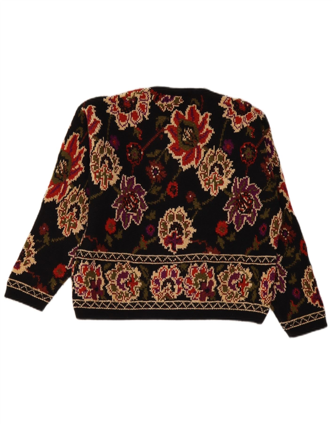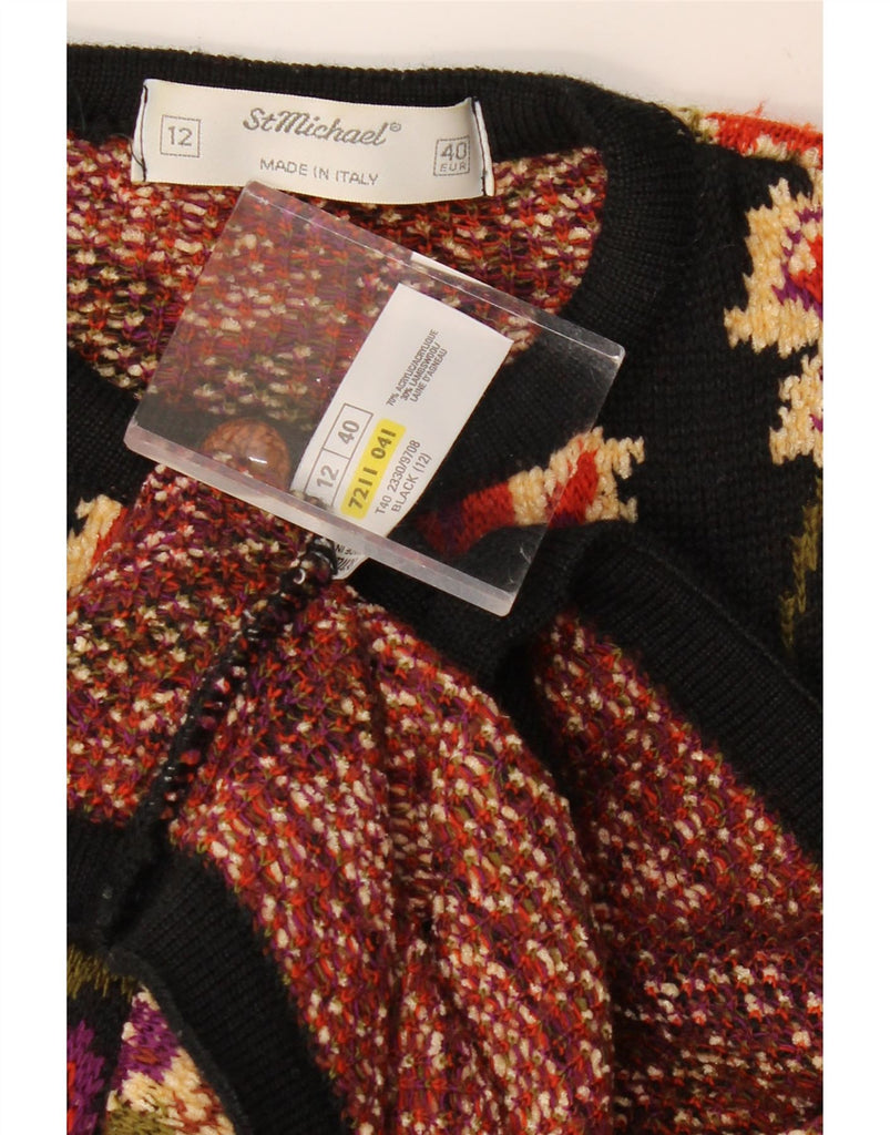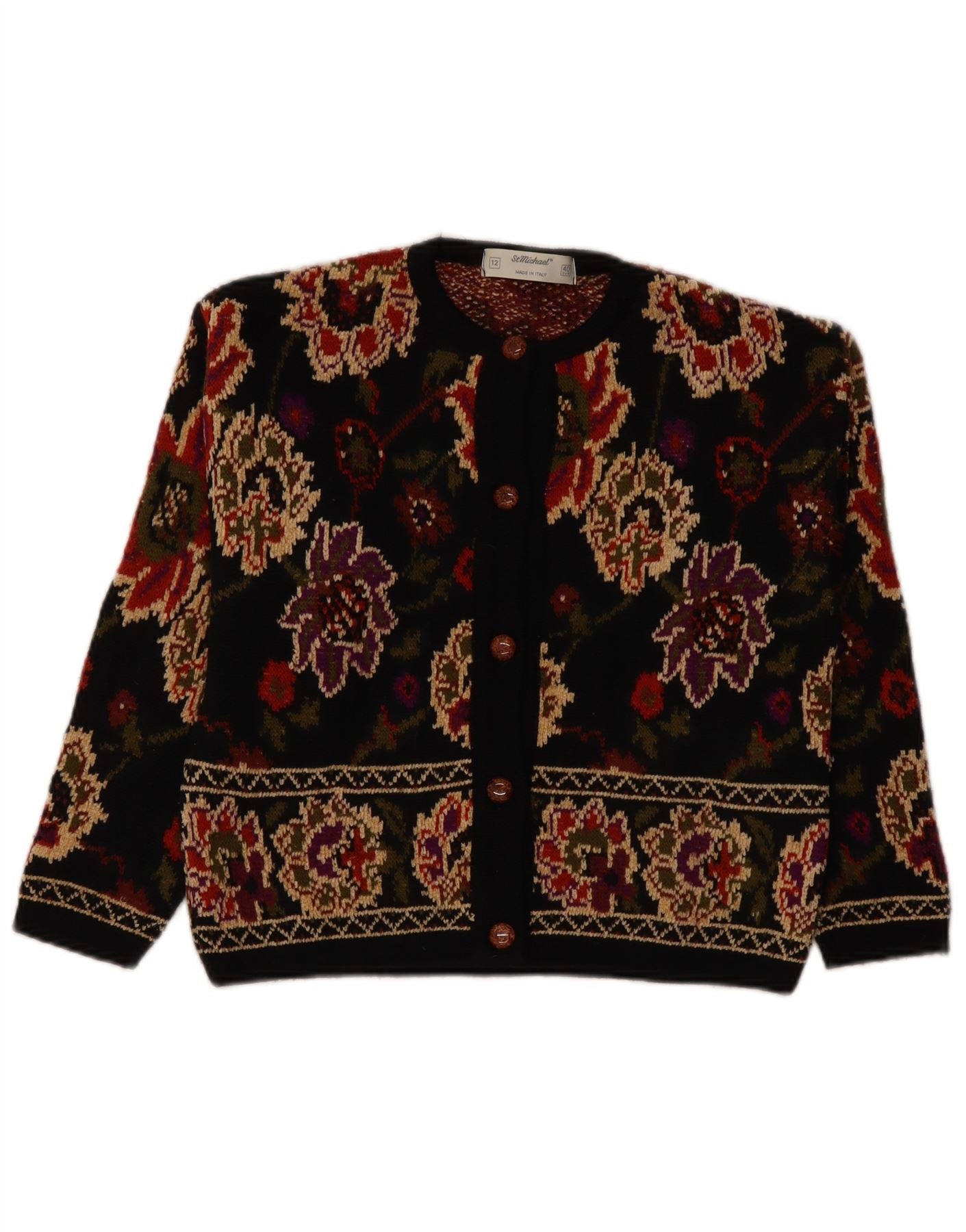 ST MICHAEL Dame Cardigan Sweater UK 12 Medium Black Floral Acryl
