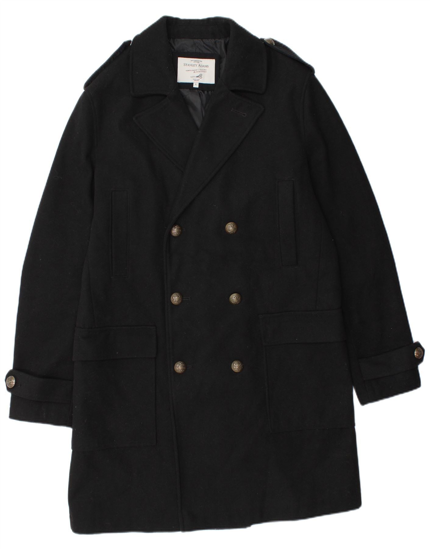 STANLEY ADAMS Herre Military Double Breasted Coat UK 40 Large Black