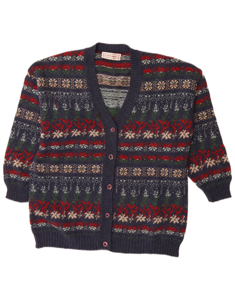 STEFANEL Womens Cardigan Sweater UK 14 Medium Navy Blue Fair Isle