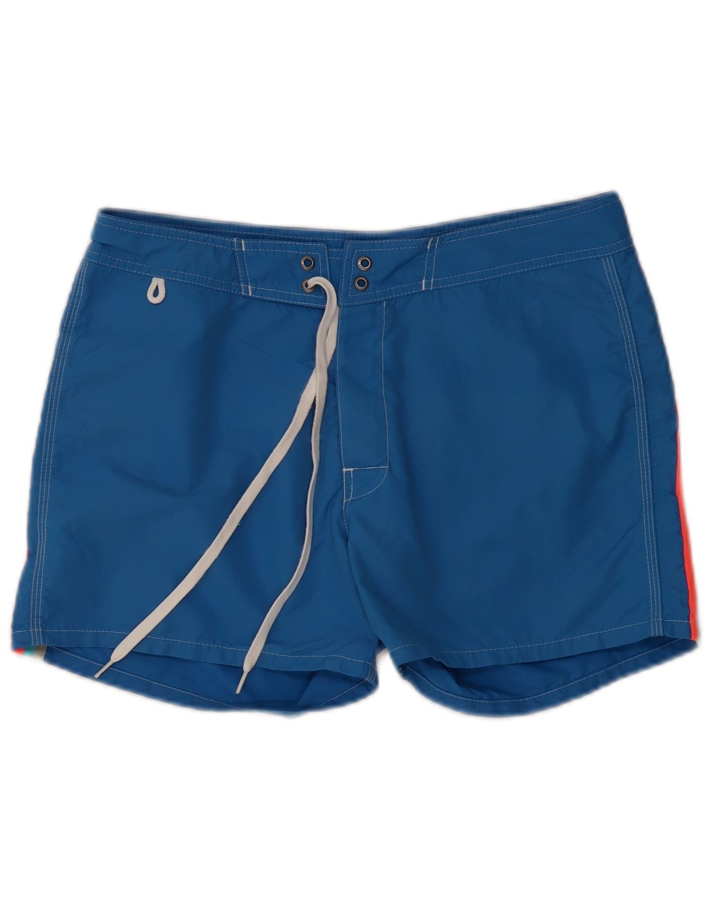 SUNDEK Grafiske badeshorts til mænd mellemblå stribet nylon