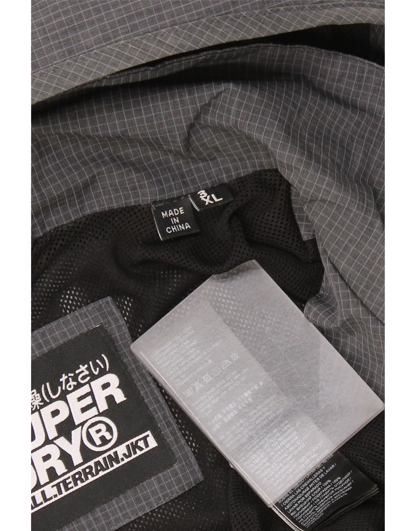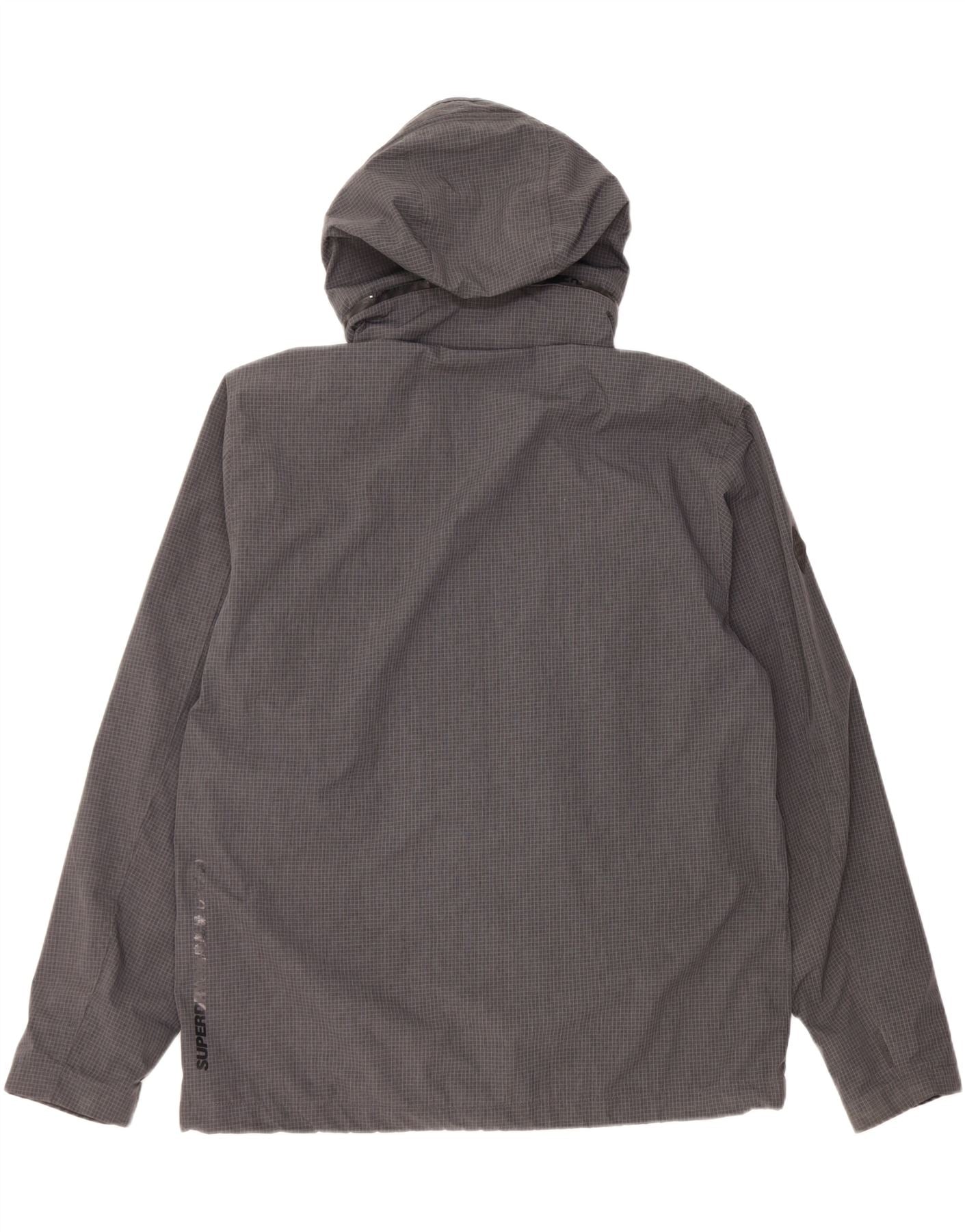 Superdry Grafisk regnjakke med hætte til mænd UK 46 3XL grå ternet polyester