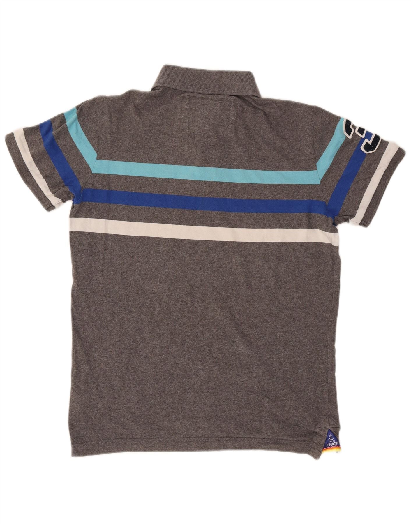 - AI beskrivelse: Denne Superdry poloshirt til mænd er lavet af blødt gråt 100 procent bomuldsstrik. Den har en klassisk halsudskæring og en knaplukning for et smart look. Fed blå og hvide striber pryder brystet og tilføjer et sporty touch. Korte ærmer og en normal pasform sikrer behageligt slid. Et broderet logo på ærmet og et lille mærkemærke på forneden giver subtile detaljer.