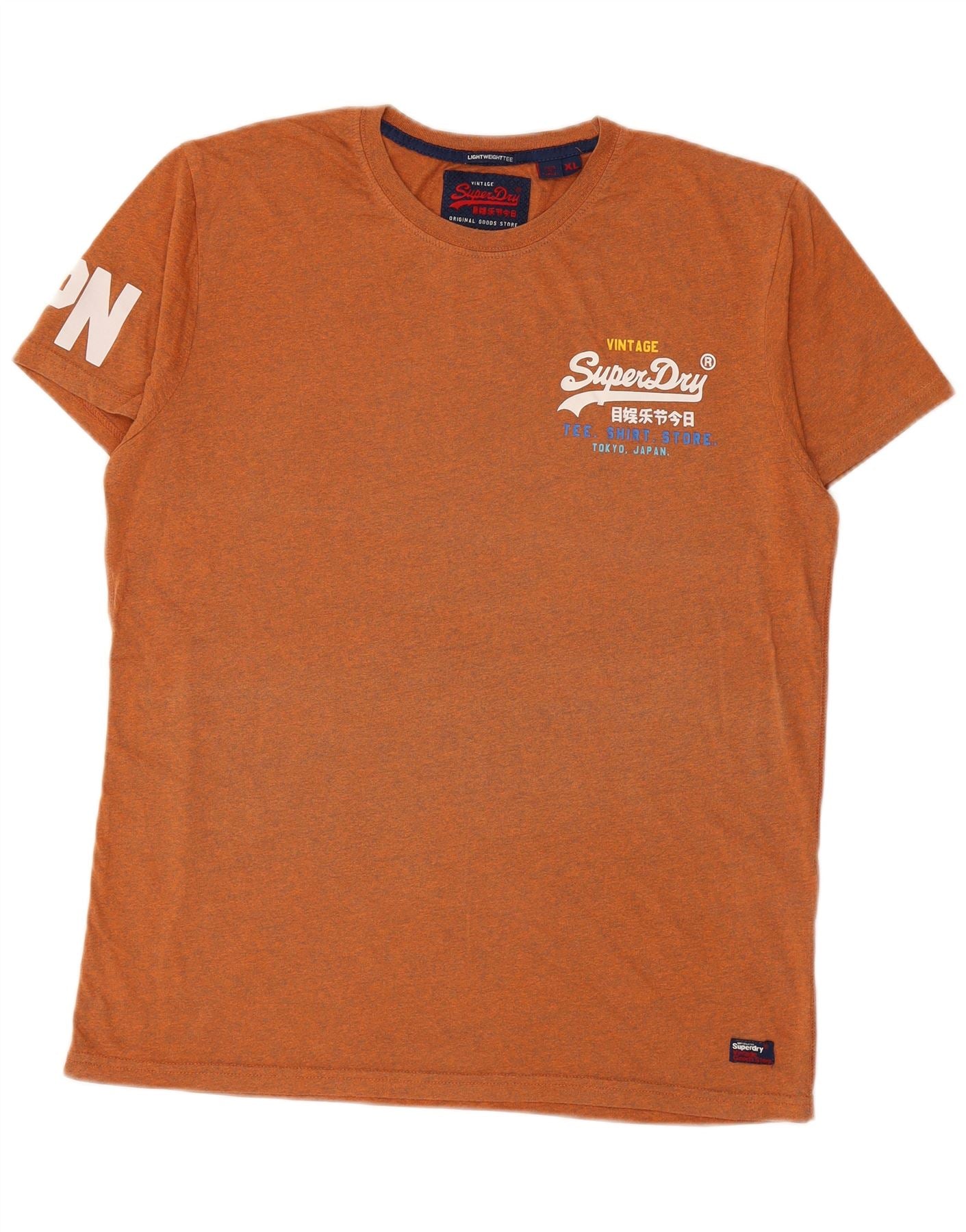 SUPERDRY Herre grafisk T-shirt Top XL Orange Flecked Bomuld