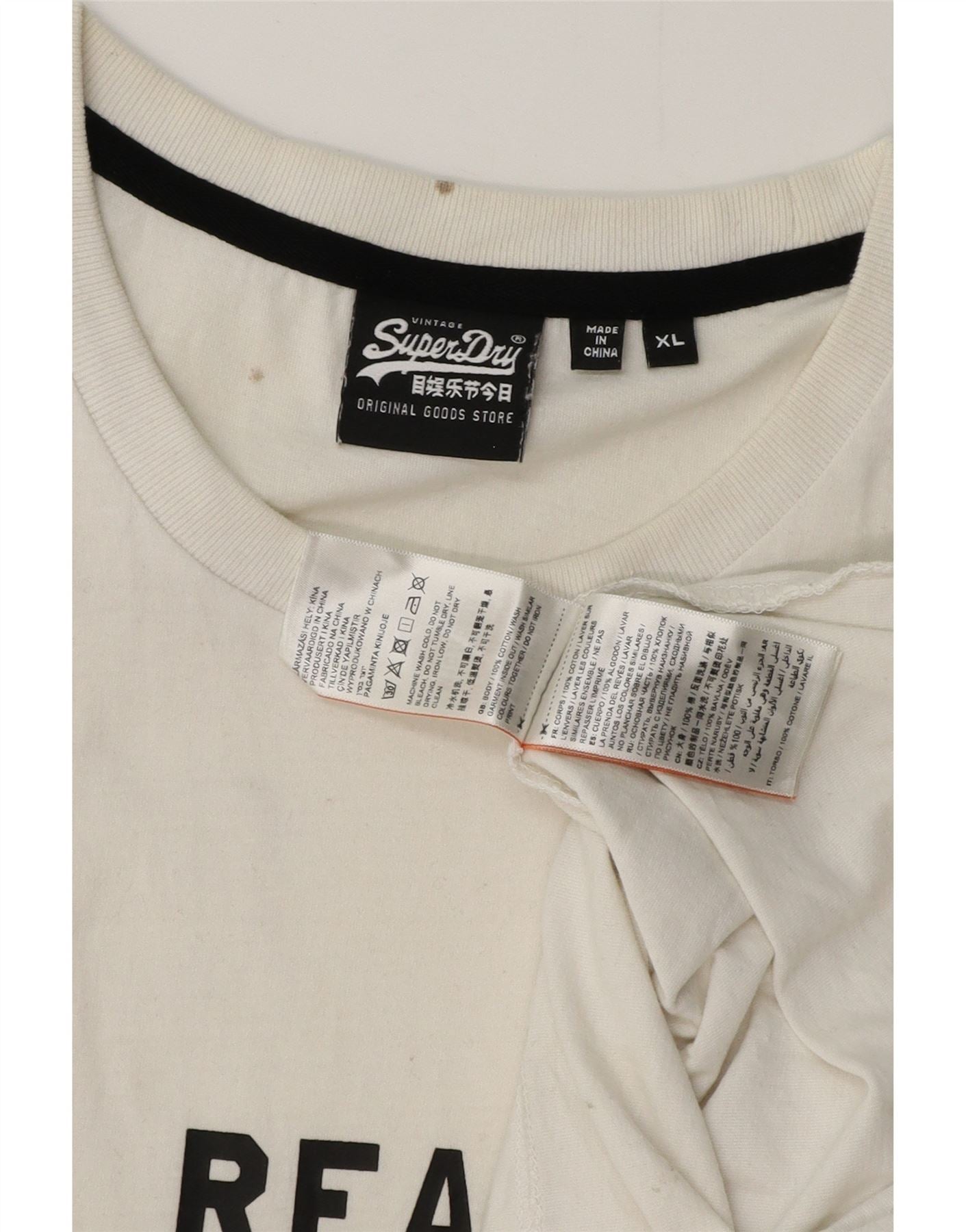SUPERDRY Herre grafisk T-shirt Top XL Hvid Bomuld