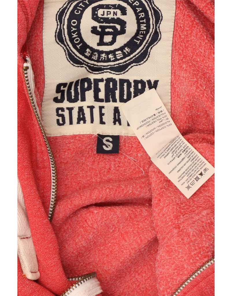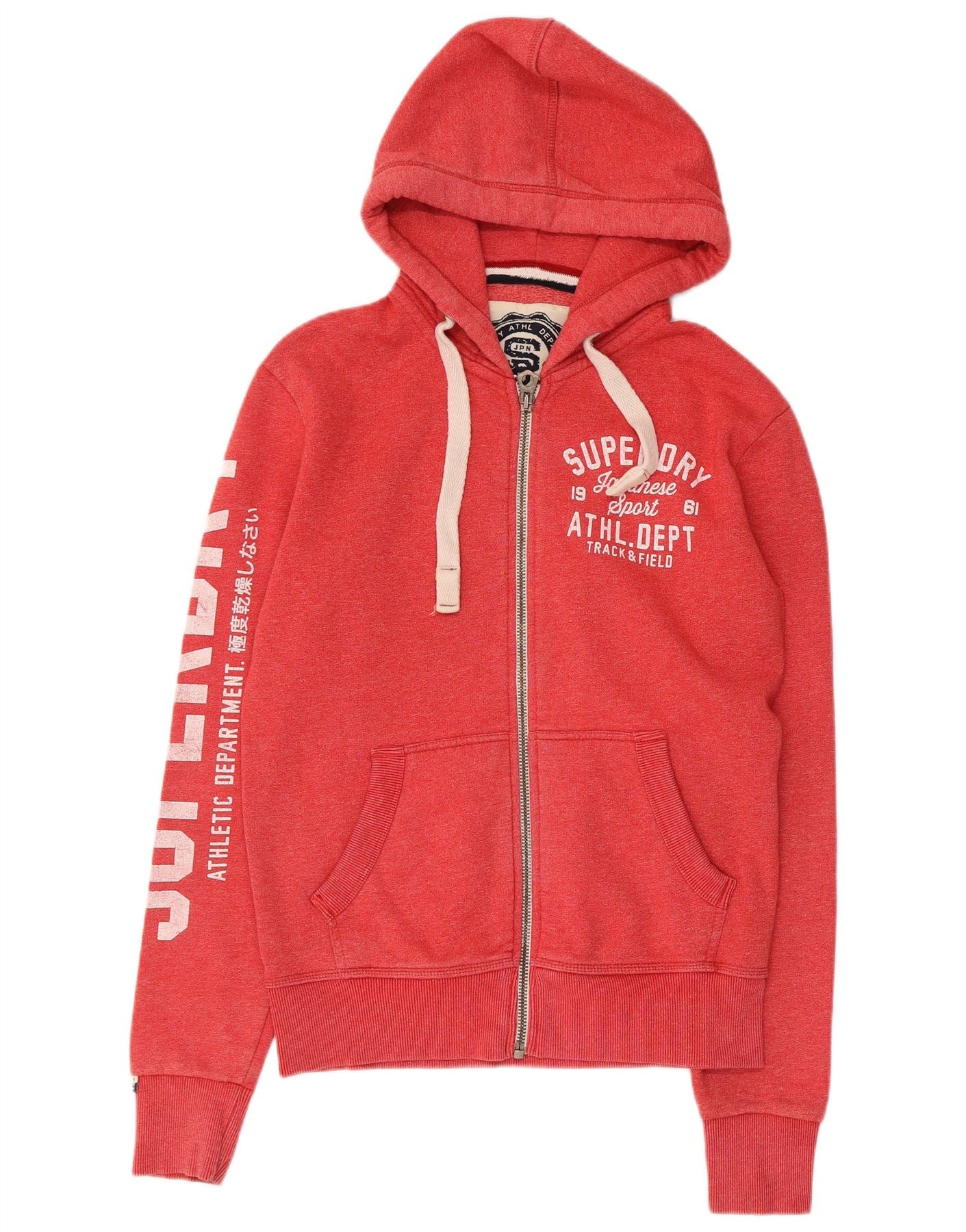 SUPERDRY Mens Graphic Zip Hoodie Sweater Small Red Flecked Cotton