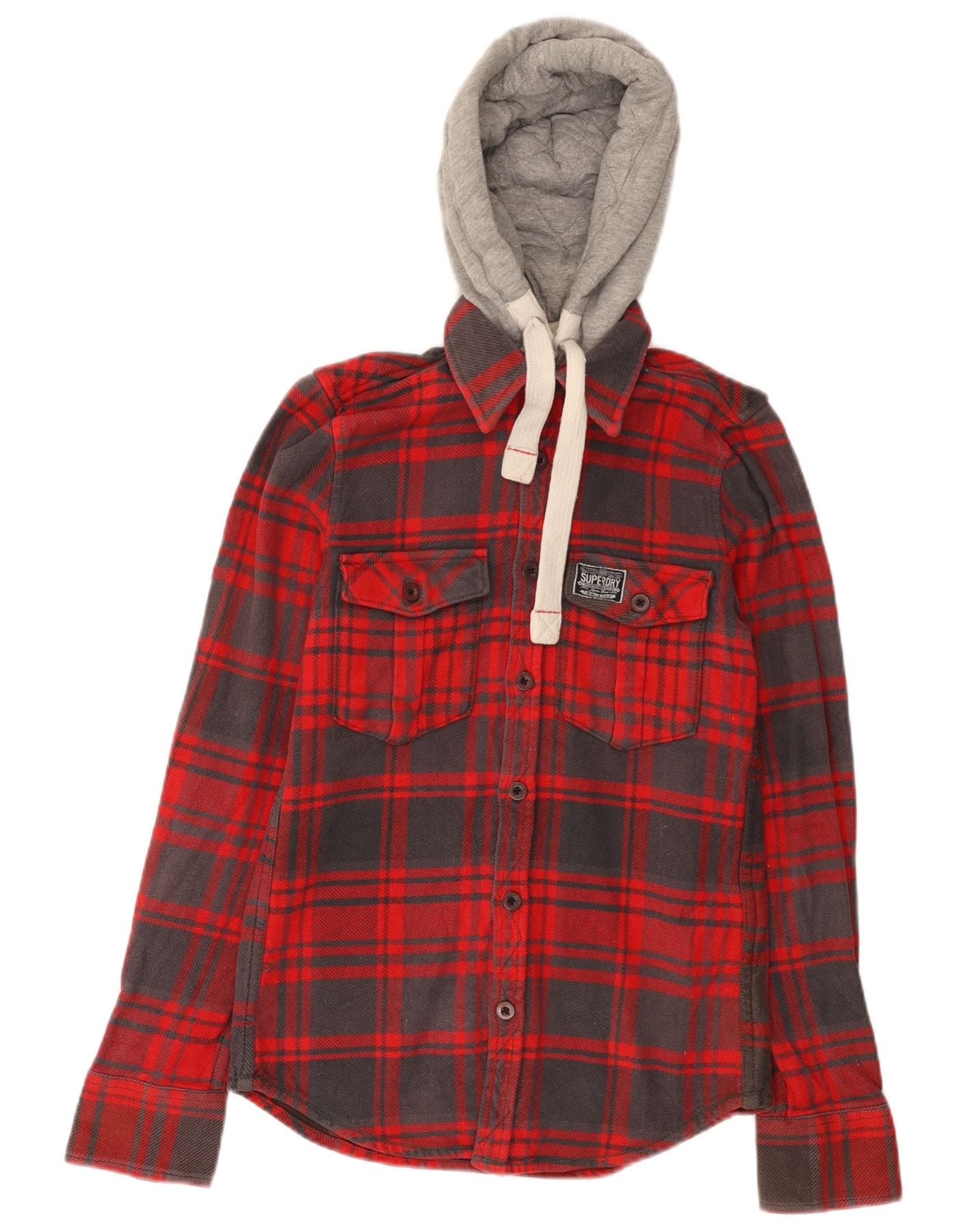 SUPERDRY Flanelskjorte med hætte til mænd Lille rød plaid bomuld
