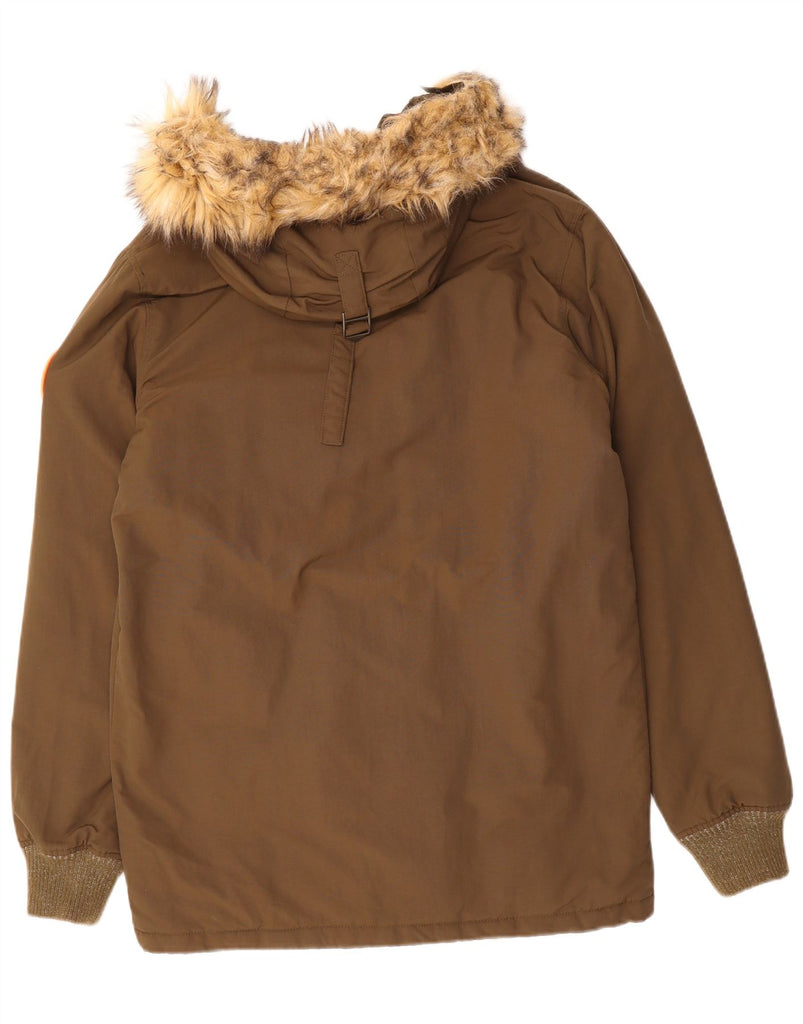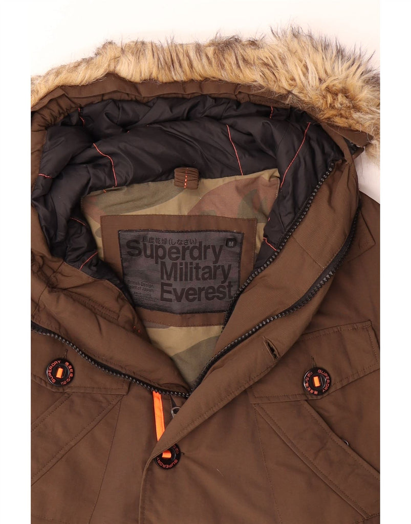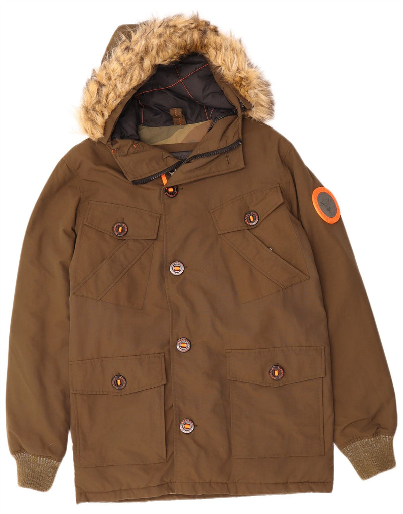 SUPERDRY Mens Hooded Military Jacket UK 38 Medium Brown Polyester