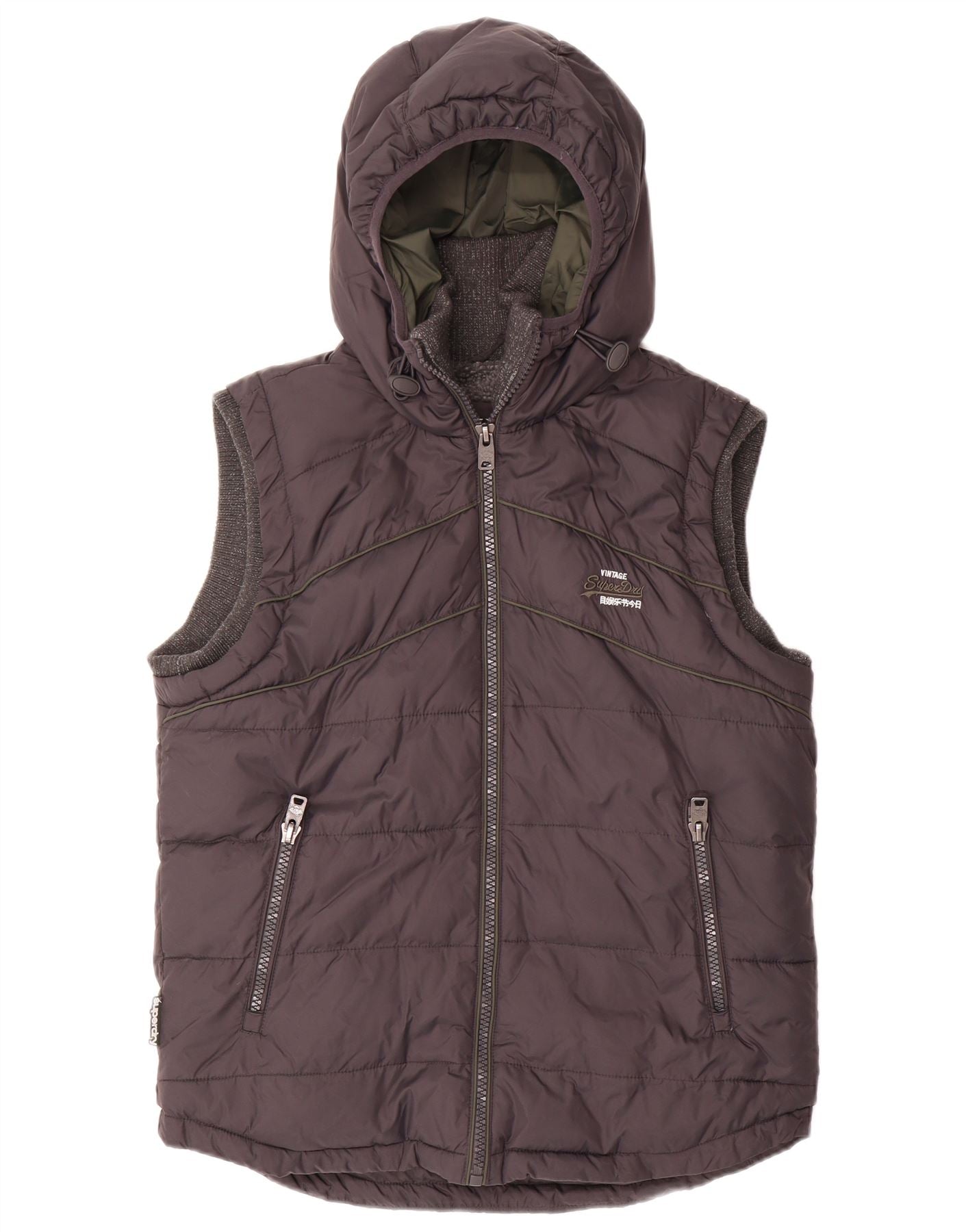 SUPERDRY Herre hætte polstret Gilet UK 38 Medium Navy Blue Nylon