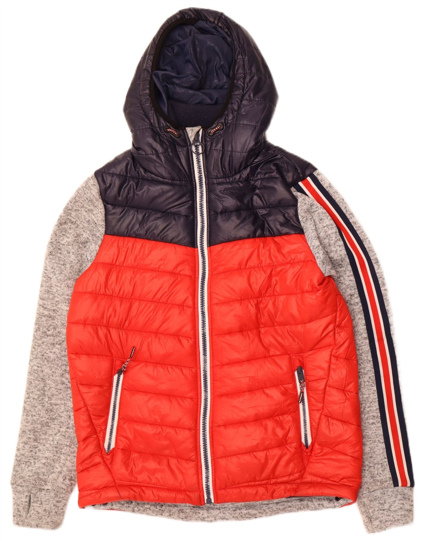 SUPERDRY Mens Hooded Padded Jacket UK 38 Medium Red Colourblock Polyester