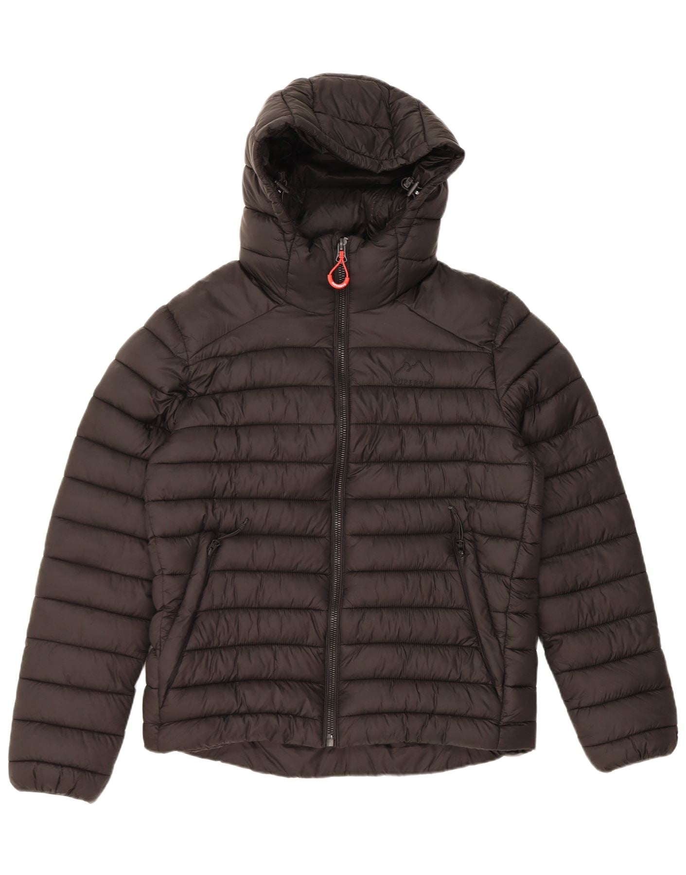 - AI Description: This Superdry mens padded jacket offers lightweight warmth in a classic black woven fabric. Its insulated design features a high neck and a practical hood for added protection. The full zip closure and zipped pockets provide secure storage and a streamlined look. Long sleeves and a regular fit ensure comfortable wear. This jacket combines functional features with a clean, versatile aesthetic.