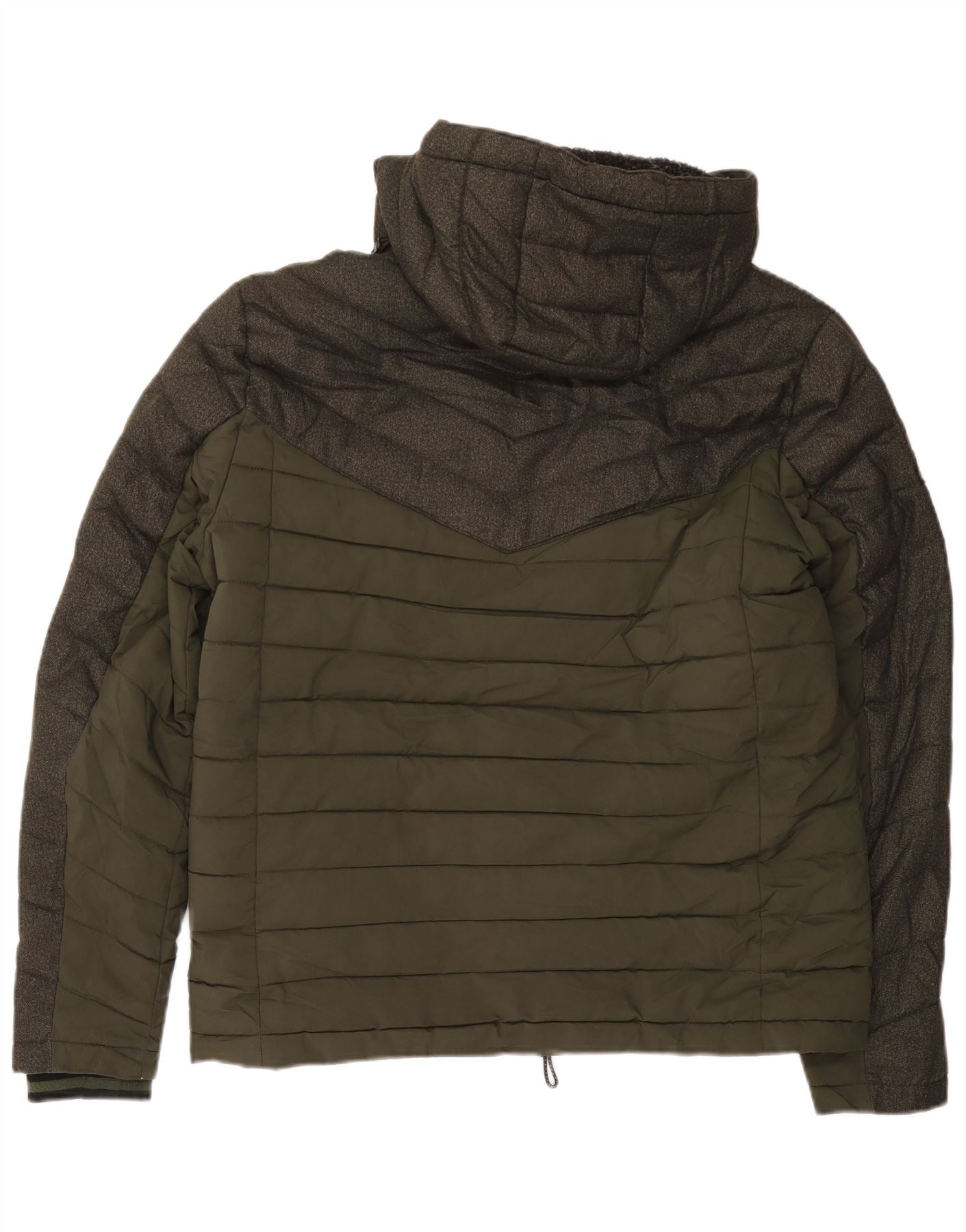 SUPERDRY Herre hættepolstret jakke UK 42 XL Khaki Colourblock Polyester