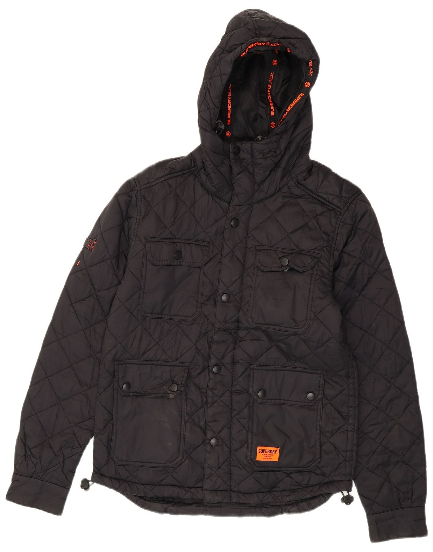 SUPERDRY Quiltet jakke med hætte til mænd UK 36 Lille sort nylon