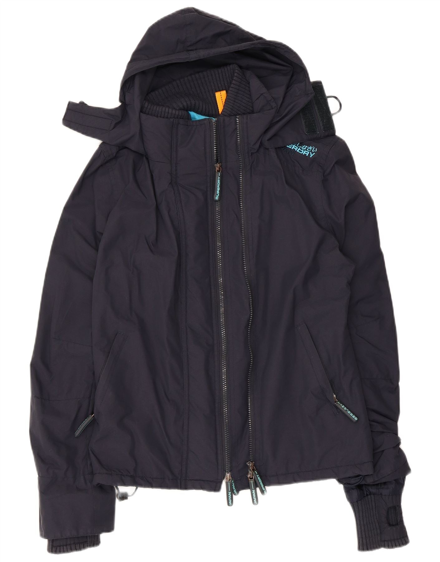 SUPERDRY Mens Hooded Windbreaker Jacket UK 38 Medium Navy Blue Nylon