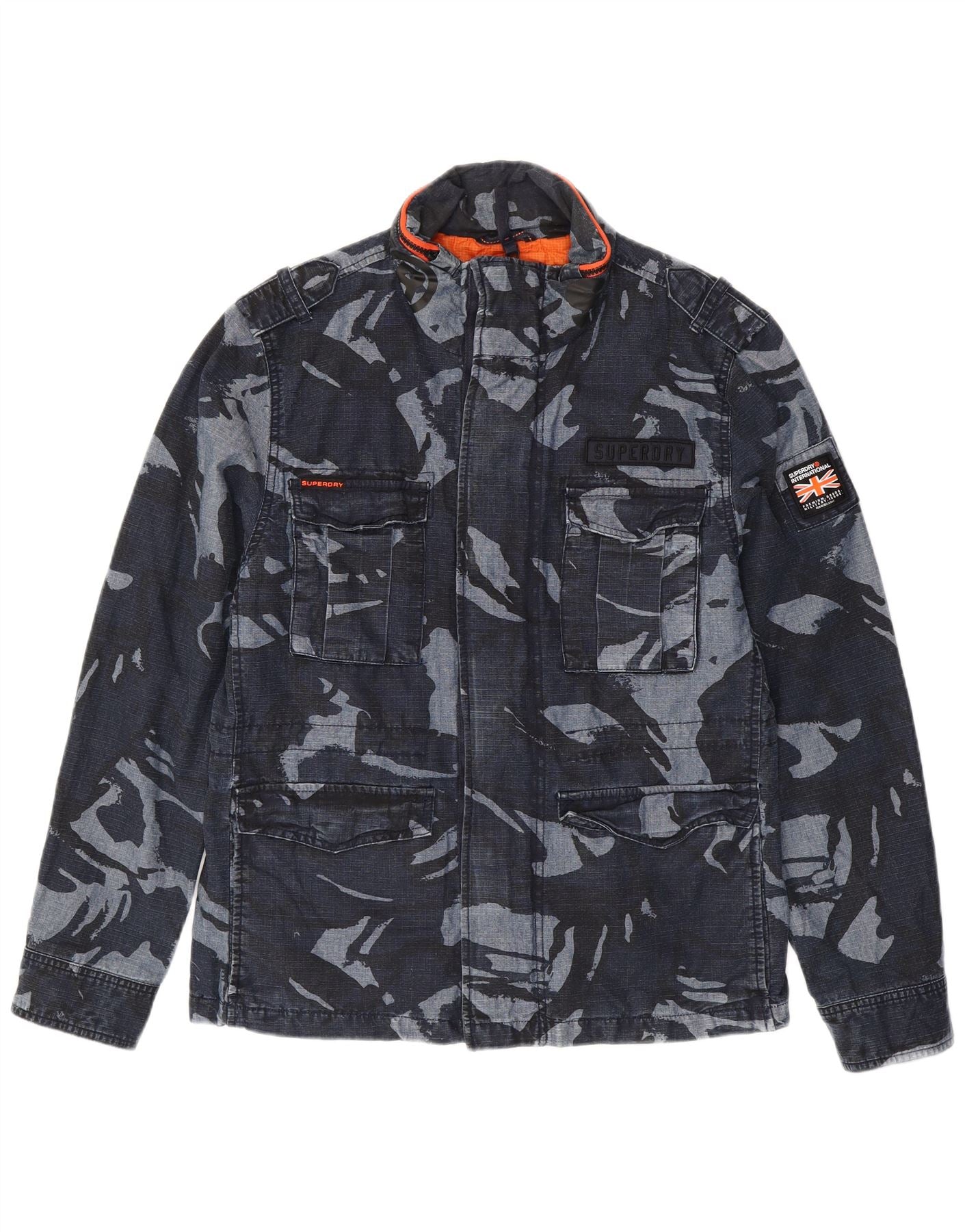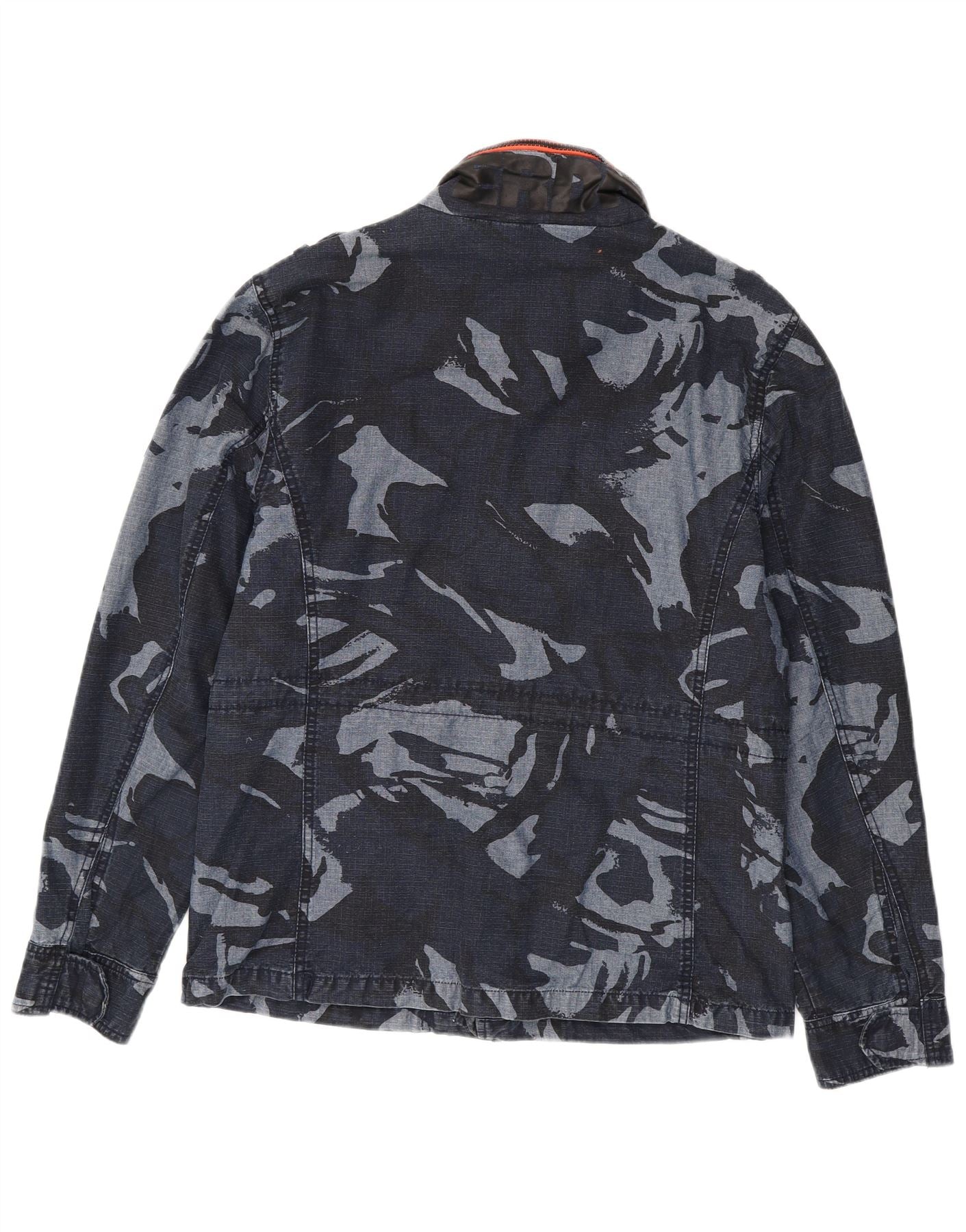 SUPERDRY Military Jacket til mænd UK 40 Large Navy Blue Camouflage Cotton