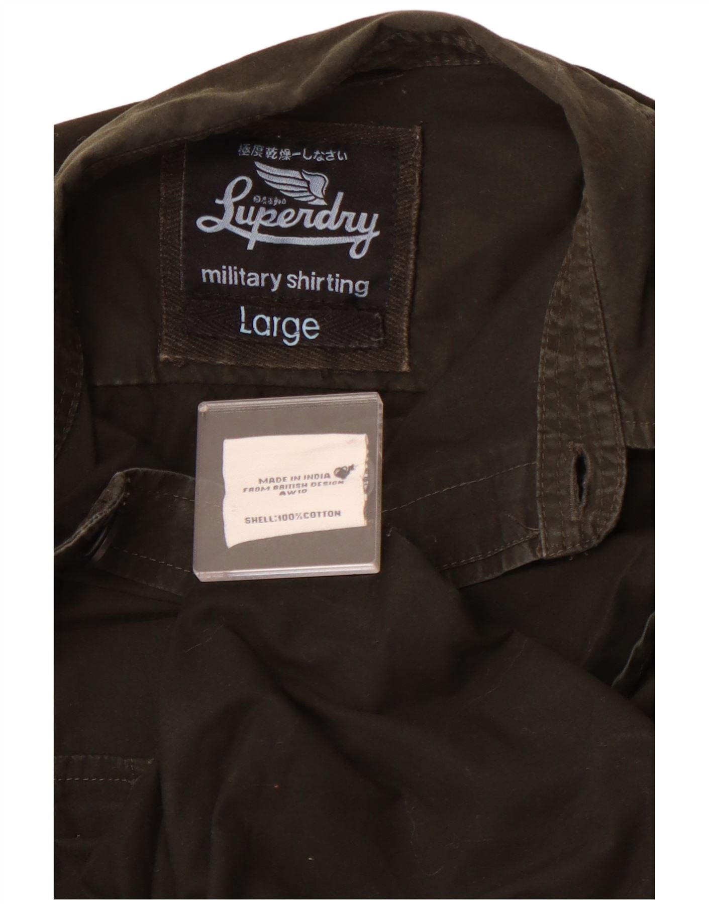 SUPERDRY Militærskjorte til mænd Stor Khaki Bomuld