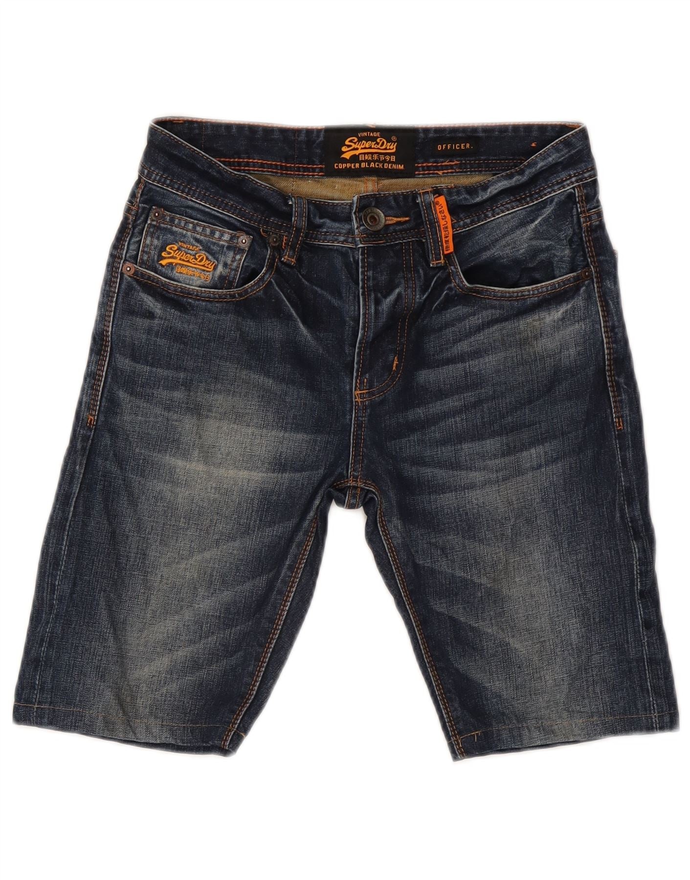 SUPERDRY Herre Officer Denim Shorts W28 Små blå bomuld