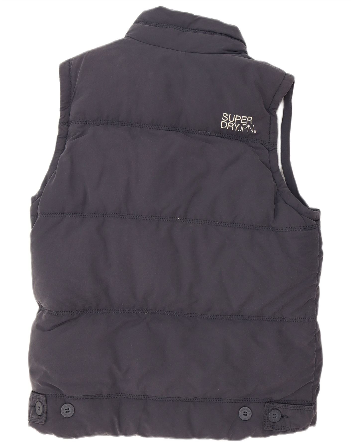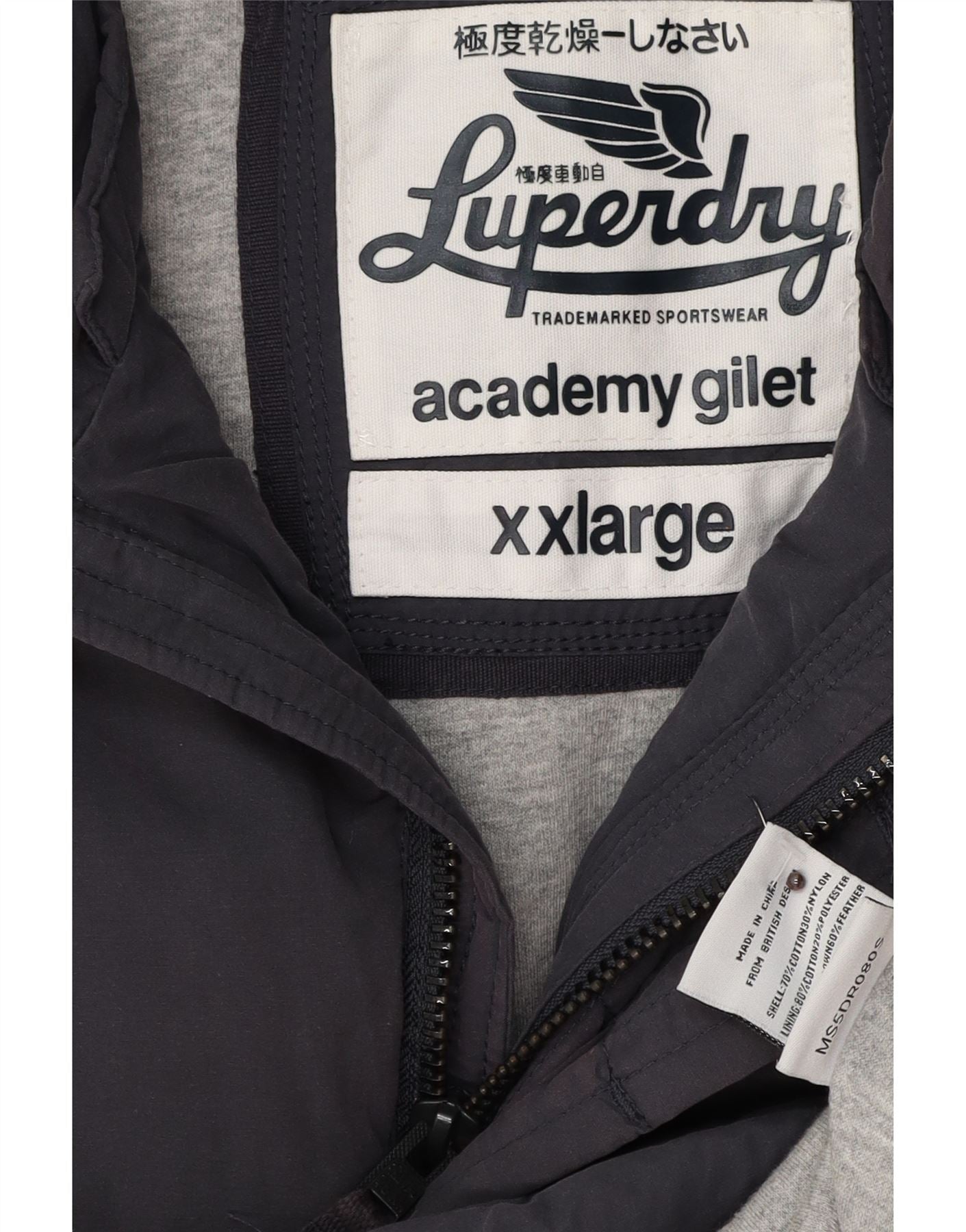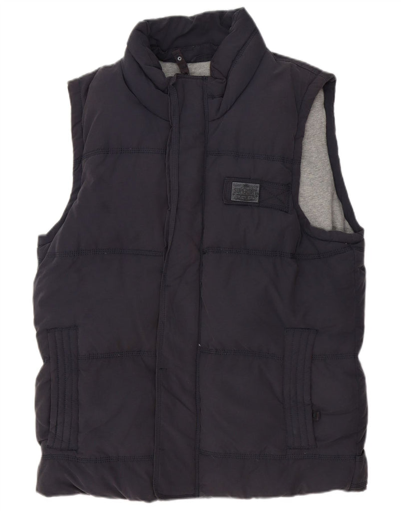 - AI Description: This Superdry mens padded gilet is crafted from a durable cotton nylon blend in a rich navy blue. Its padded construction offers warmth and a comfortable feel. The collared neckline and full zip closure provide practical protection. A regular fit ensures easy layering, while functional pockets add utility. Subtle logo detailing completes this classic bodywarmer.