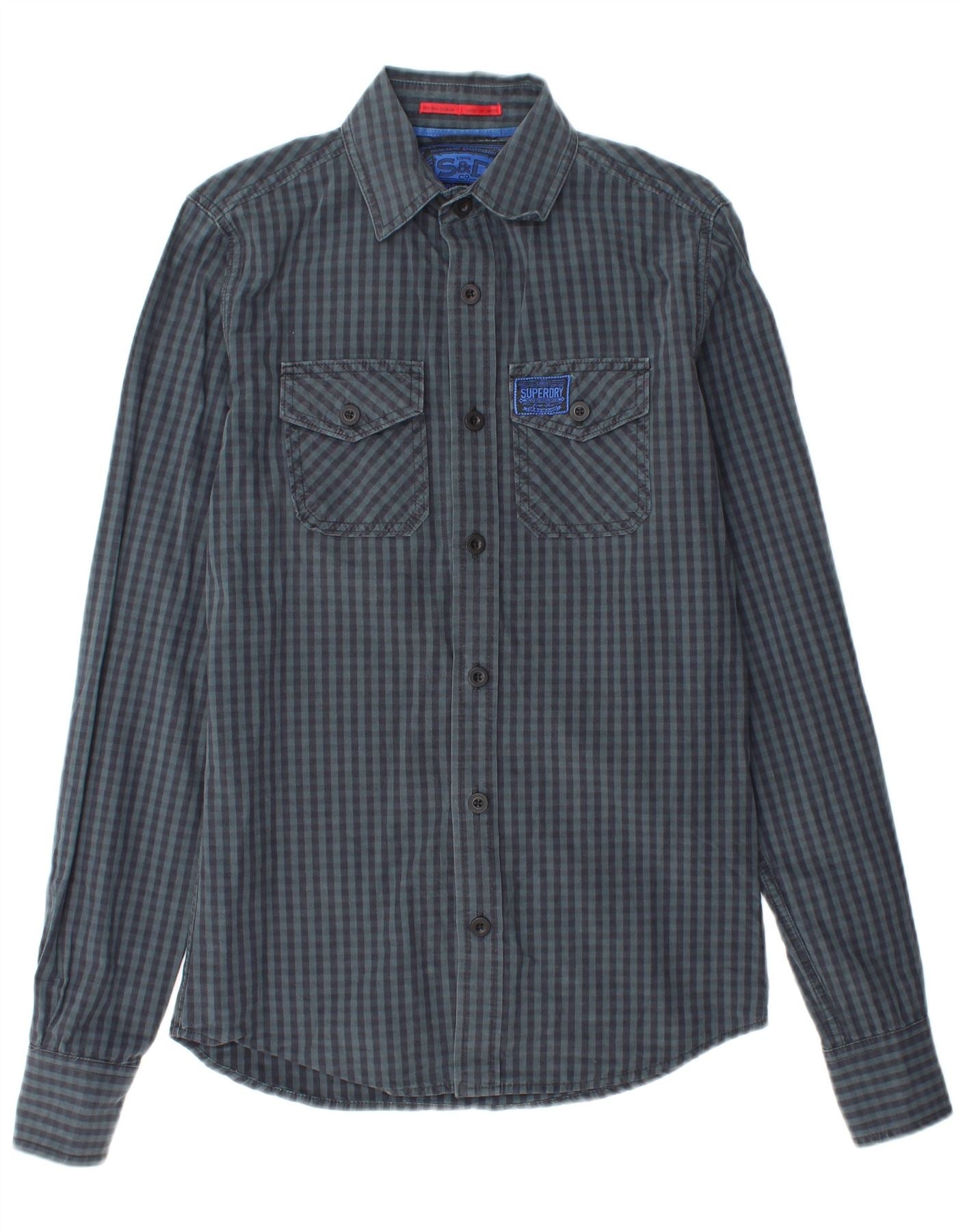 SUPERDRY herreskjorte lille marineblå Gingham bomuld