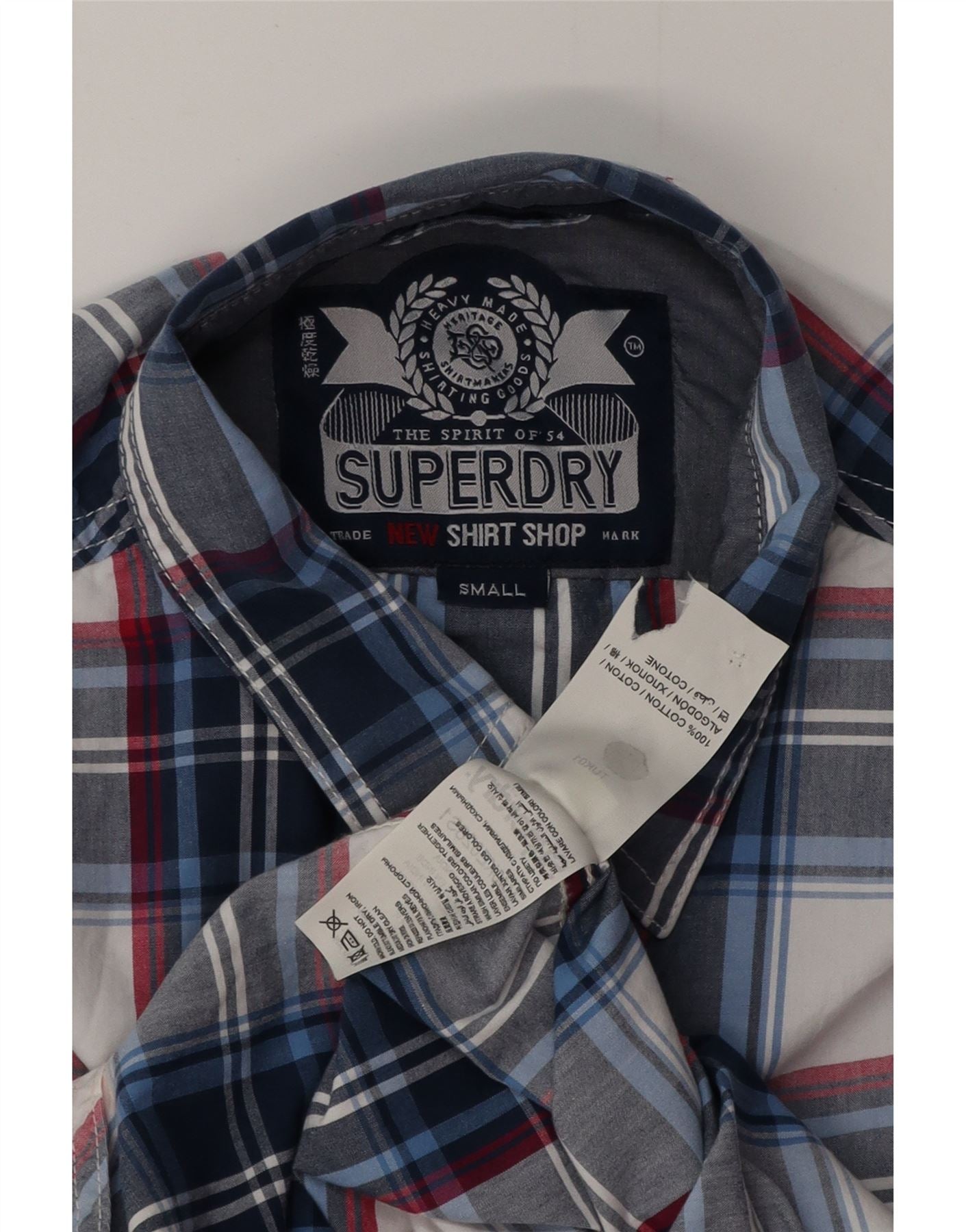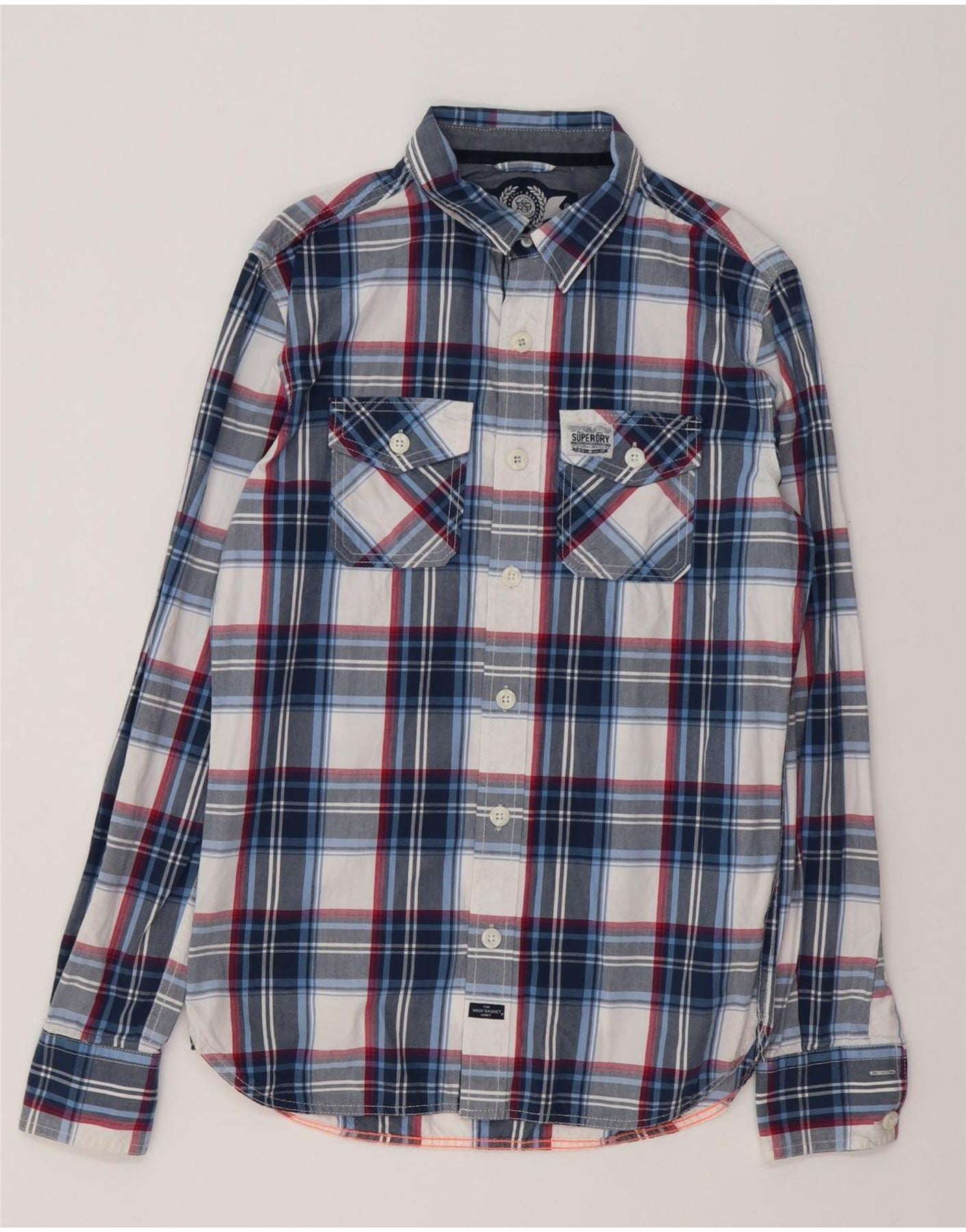 SUPERDRY Herreskjorte lille marineblå plaid bomuld