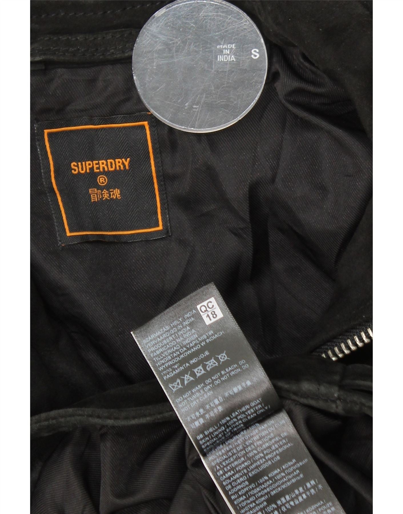 SUPERDRY Ruskindsjakke til mænd UK 36 Lille sort læder