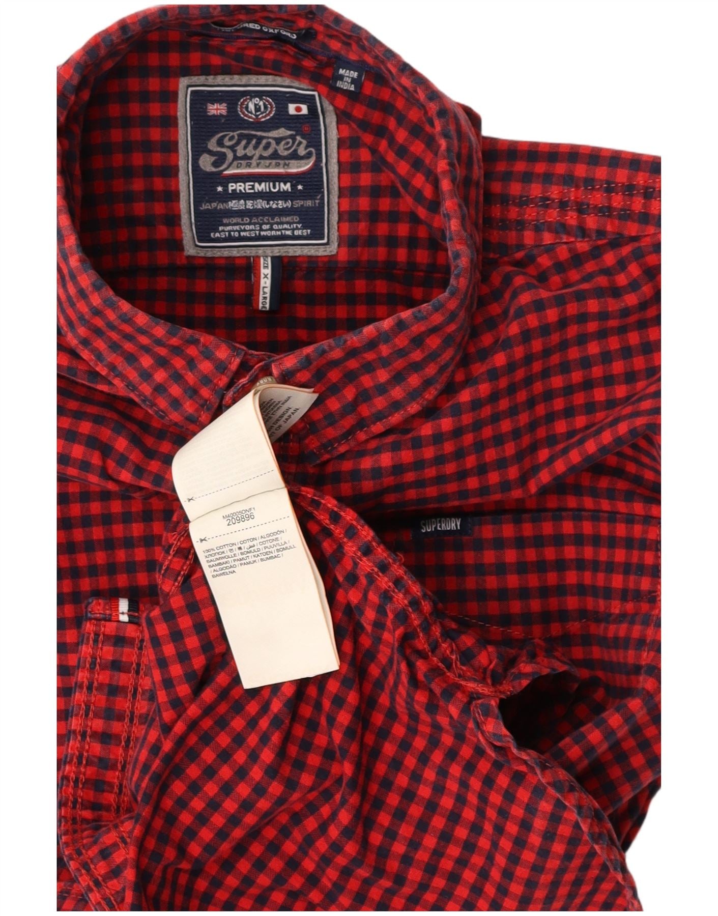 SUPERDRY Skræddersyet flannelskjorte til mænd XL Rød Gingham Bomuld