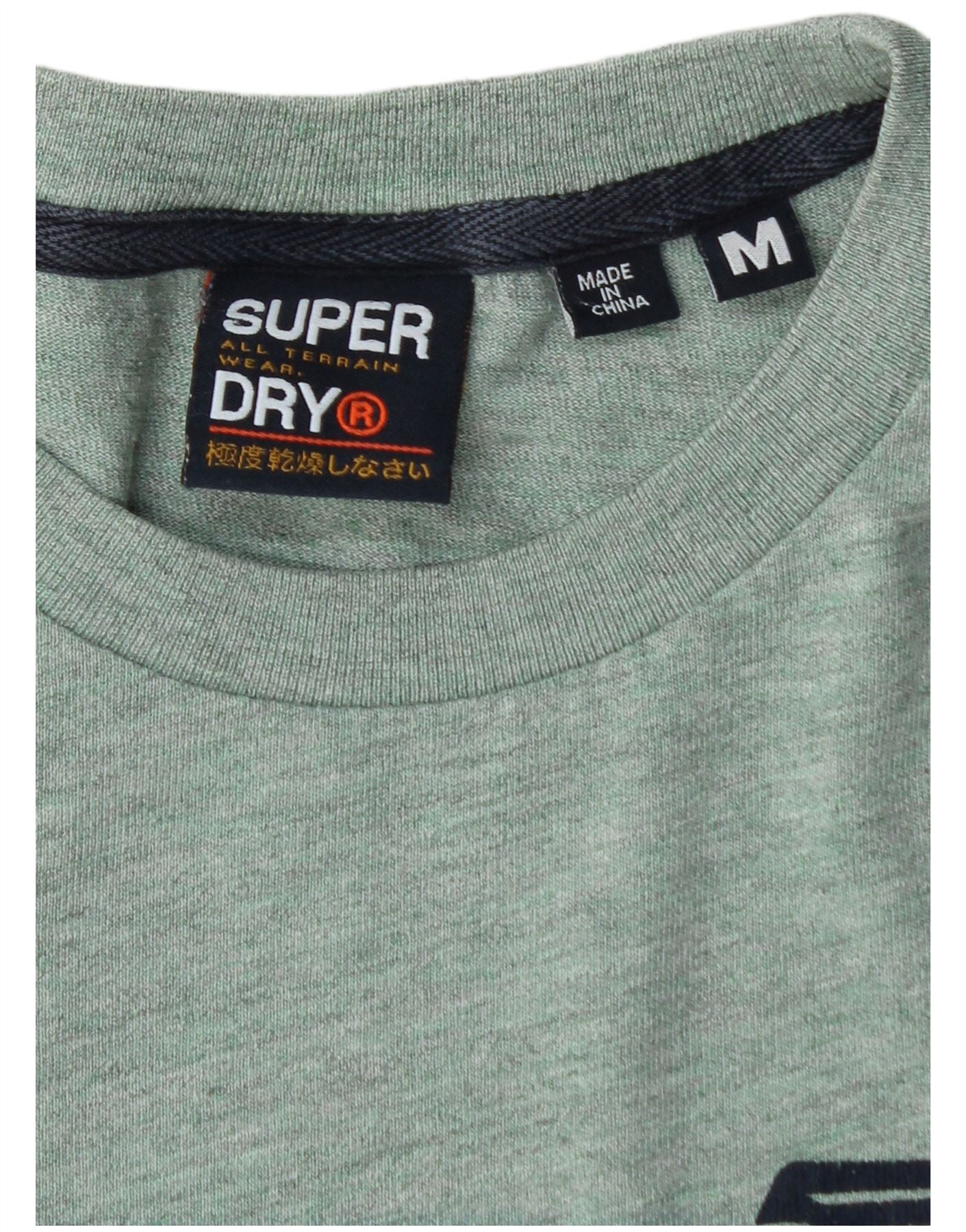 SUPERDRY Herre Yokohama grafisk T-shirt Top Medium Grøn Flecked Bomuld