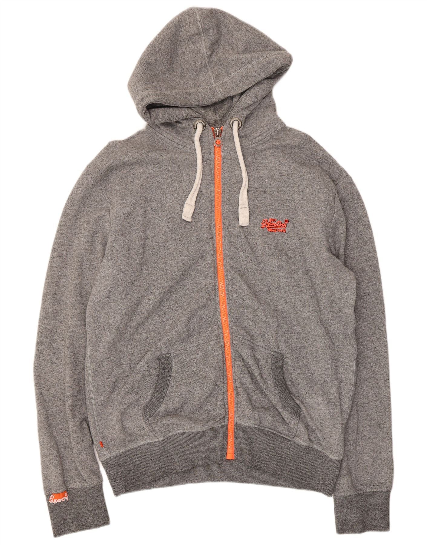 - AI Description: This Superdry mens zip hoodie sweater is crafted from a soft grey knit fabric, offering a comfortable fleece texture. It features a full zip closure and a practical hood. Long sleeves and a regular fit ensure ease of wear. The design includes convenient pockets and a graphic detail. The zip accent adds a subtle touch. This classic style from the Orange Label range provides versatile comfort.