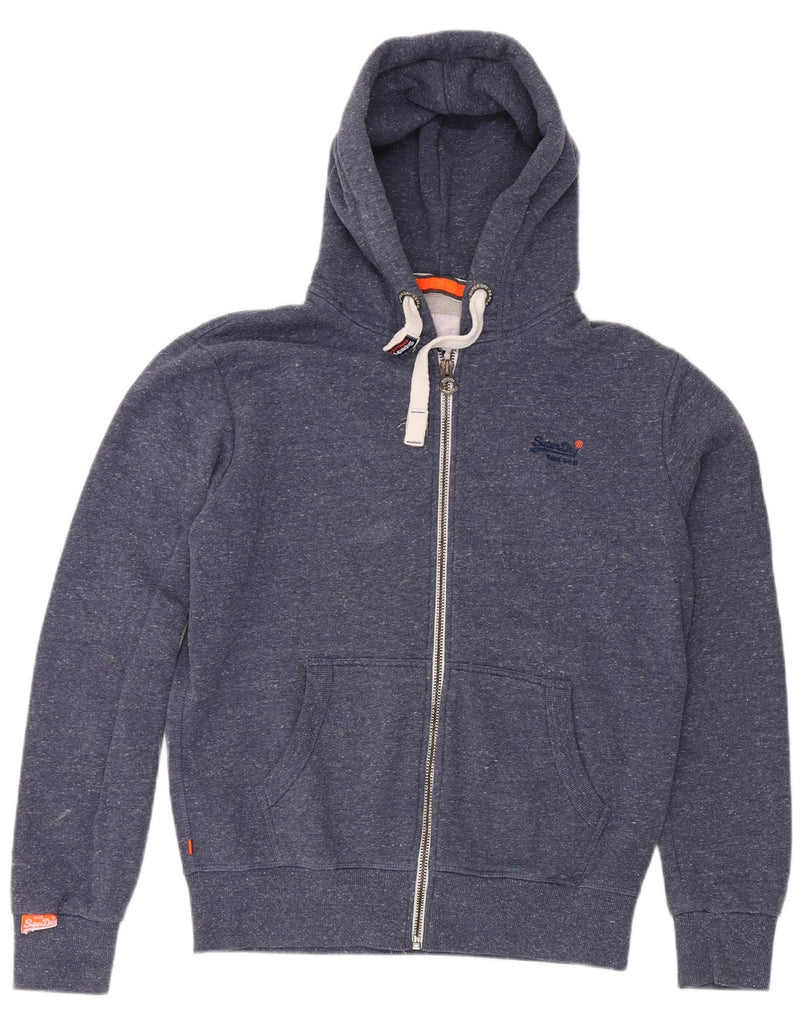 SUPERDRY Mens Zip Hoodie Sweater XL Blue Flecked Cotton