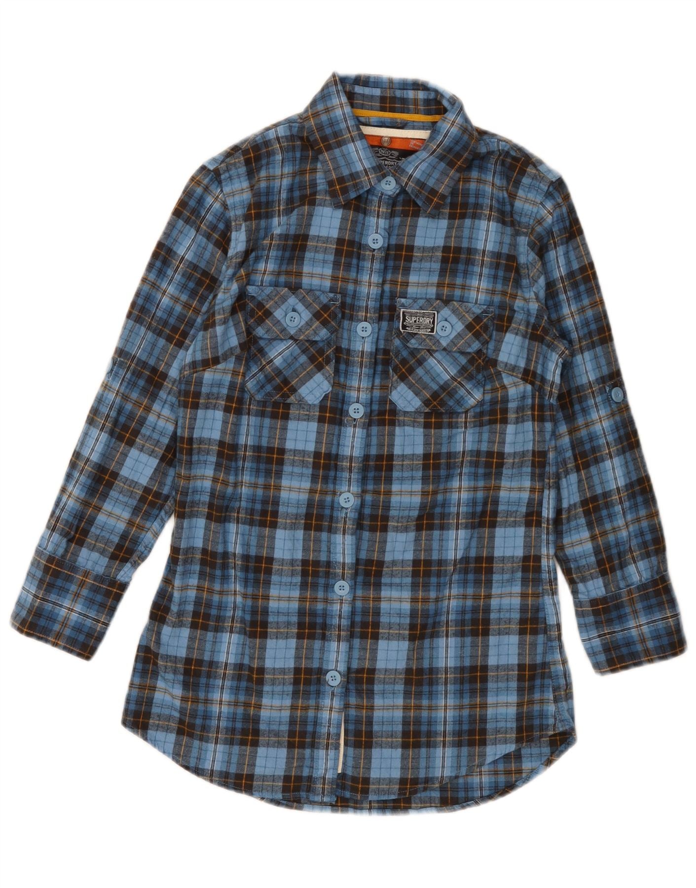 SUPERDRY Dame 3/4-ærmet flannelskjorte UK 10 Lille blå ternet bomuld