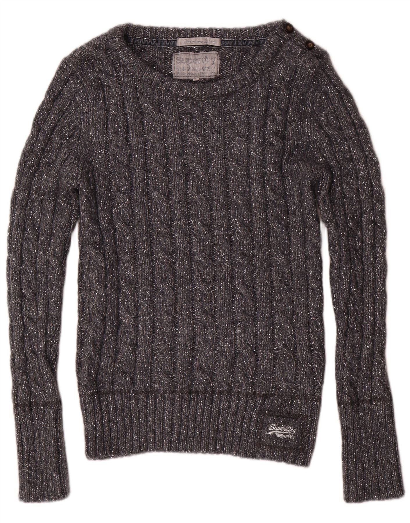 SUPERDRY Dame Boat Neck Jumper Sweater UK 16 Large Grå Polyester