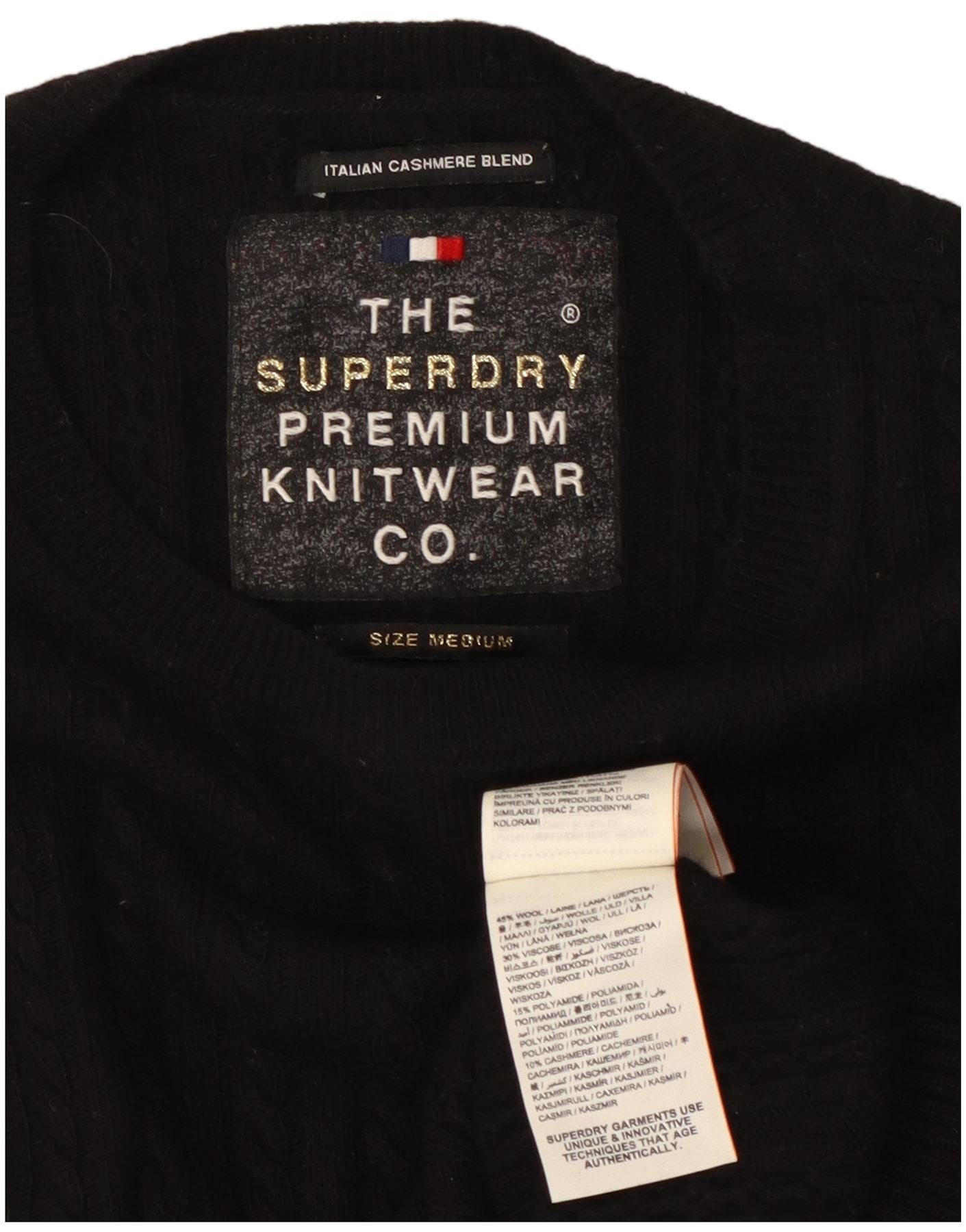 SUPERDRY Dame sweater med rund hals DK 12 Medium Sort Uld